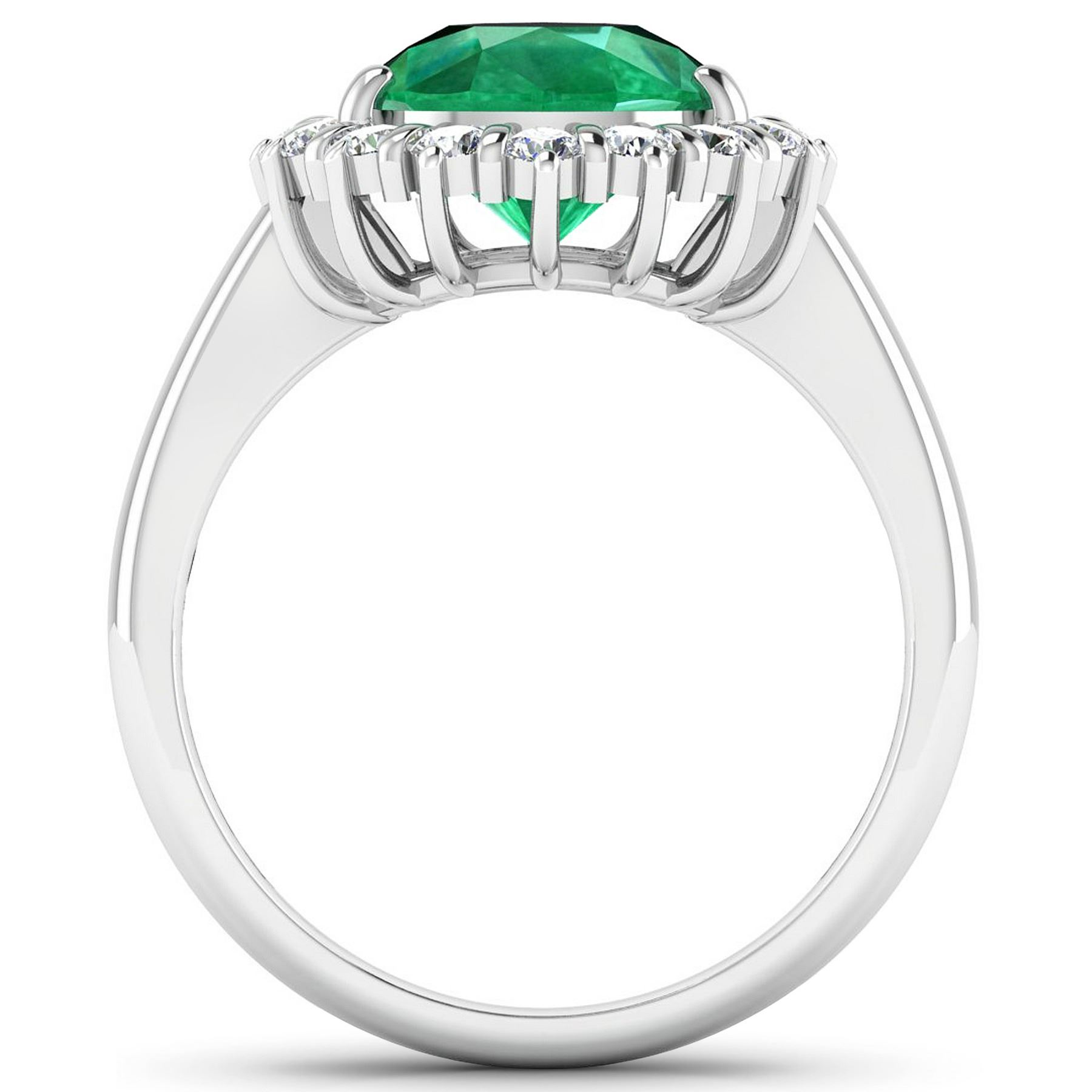 Zambian Emerald (AA) Pears 11x9mm - 1Pc + White Diamond F/C Round 2.00mm - 16Pcs ( Diamond Quality : SI-2/HI ). Total weight of gemstone is 2.85cts. Total weight of Diamonds is 0.48cts. Total weight of this ring is 4.41 grams. Ring size 7.