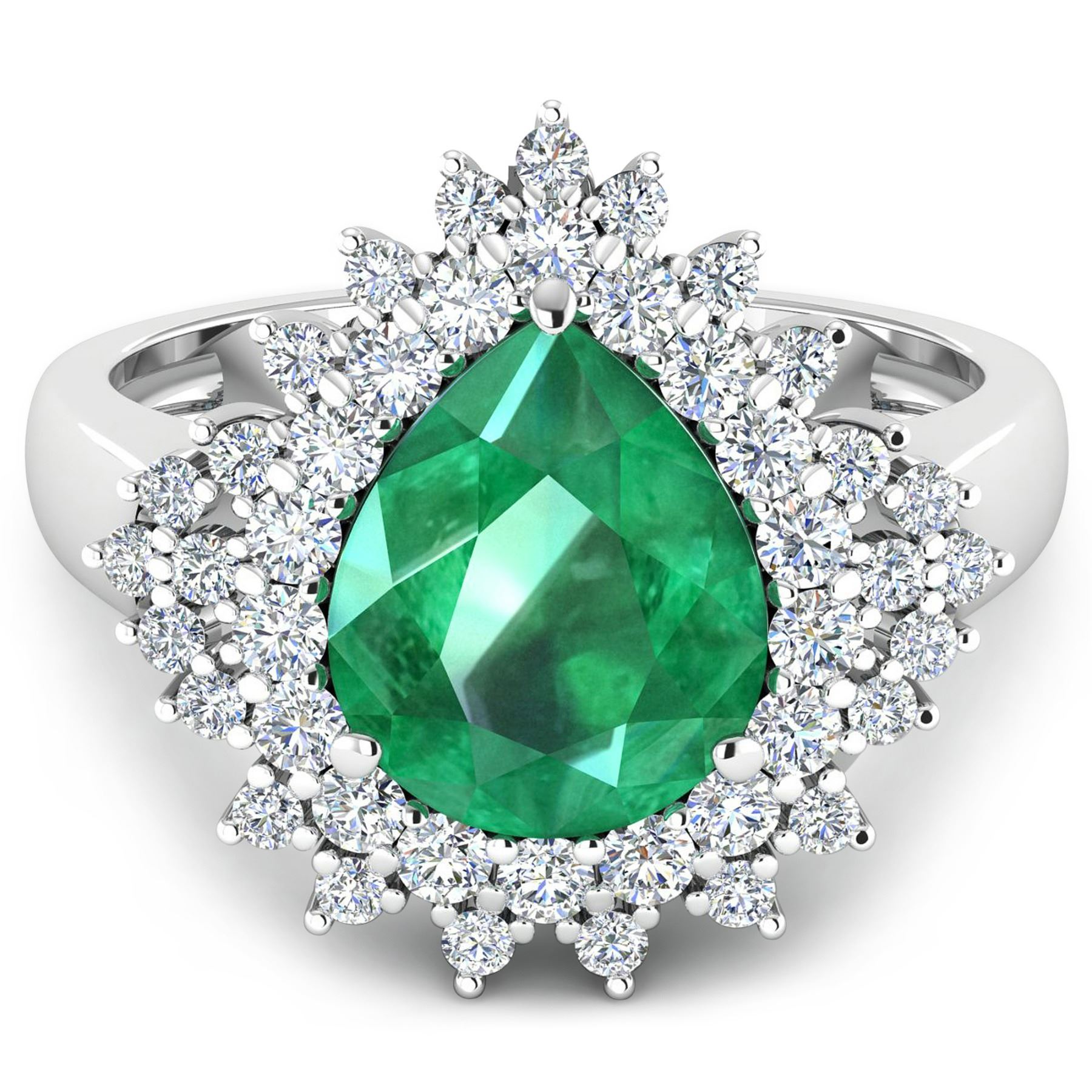 Zambian Emerald (AA) Pears 11x9mm - 1Pc + White Diamond F/C Round 2.00mm - 18Pcs + White Diamond F/C Round 1.50mm - 25Pcs ( Diamond Quality : SI-2/HI ) Total weight of gemstone is 2.85cts. Total Diamond weight is 0.89cts. Total weight of this ring is 4.73 grams. Ring size 7.