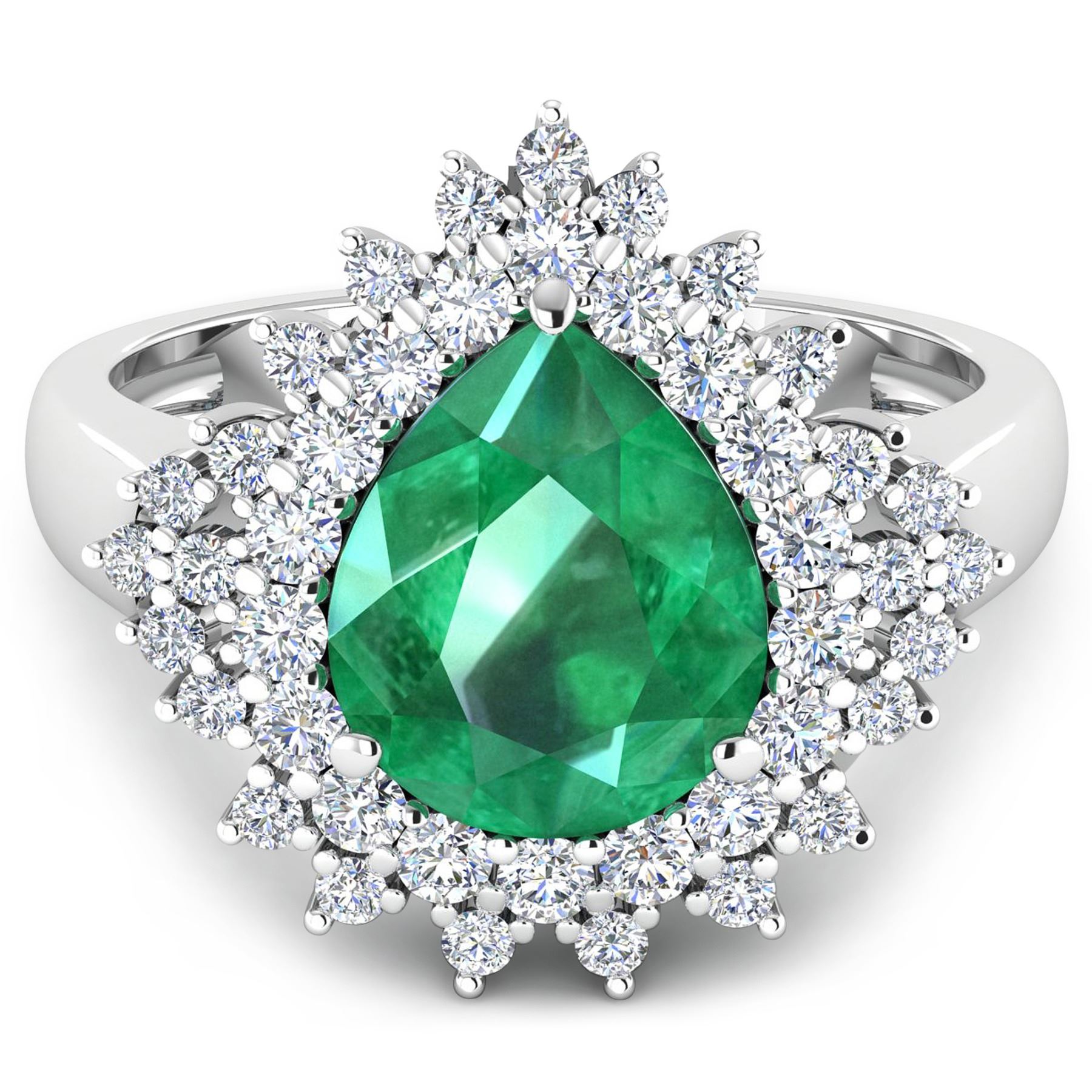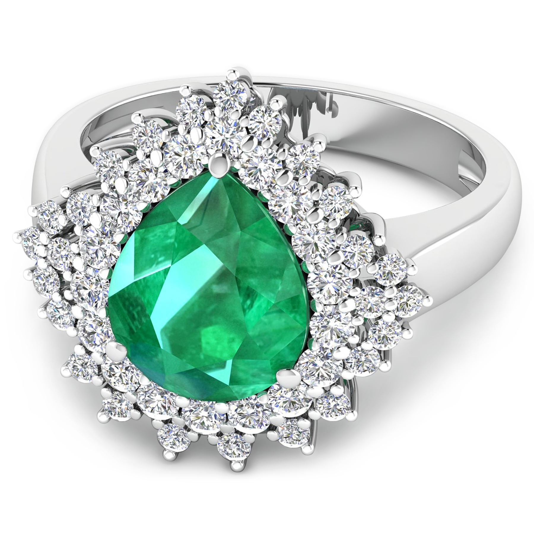 Zambian Emerald (AA) Pears 11x9mm - 1Pc + White Diamond F/C Round 2.00mm - 18Pcs + White Diamond F/C Round 1.50mm - 25Pcs ( Diamond Quality : SI-2/HI ) Total weight of gemstone is 2.85cts. Total Diamond weight is 0.89cts. Total weight of this ring is 4.73 grams. Ring size 7.