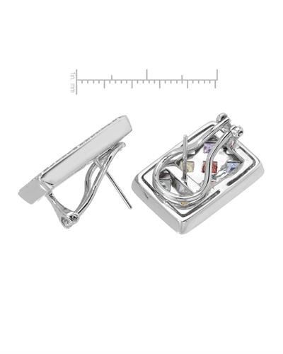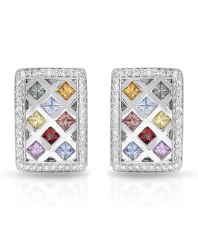 14KT White Gold 2.88ctw Multi Color Sapphire and Diamond Earrings. (16) Multi color sapphires with a total weight of 2.88cts. (92) Round Diamonds with a total weight of 0.85cts with a color of I and clarity of I-1. Total weight of these earrings are 13.57 grams.