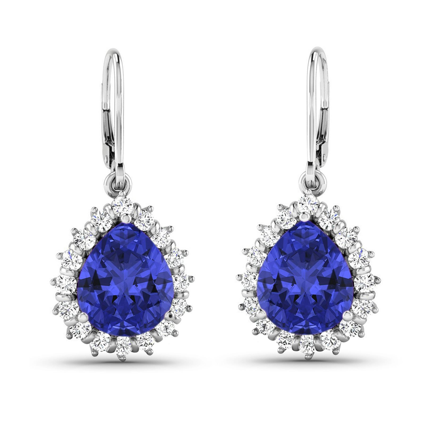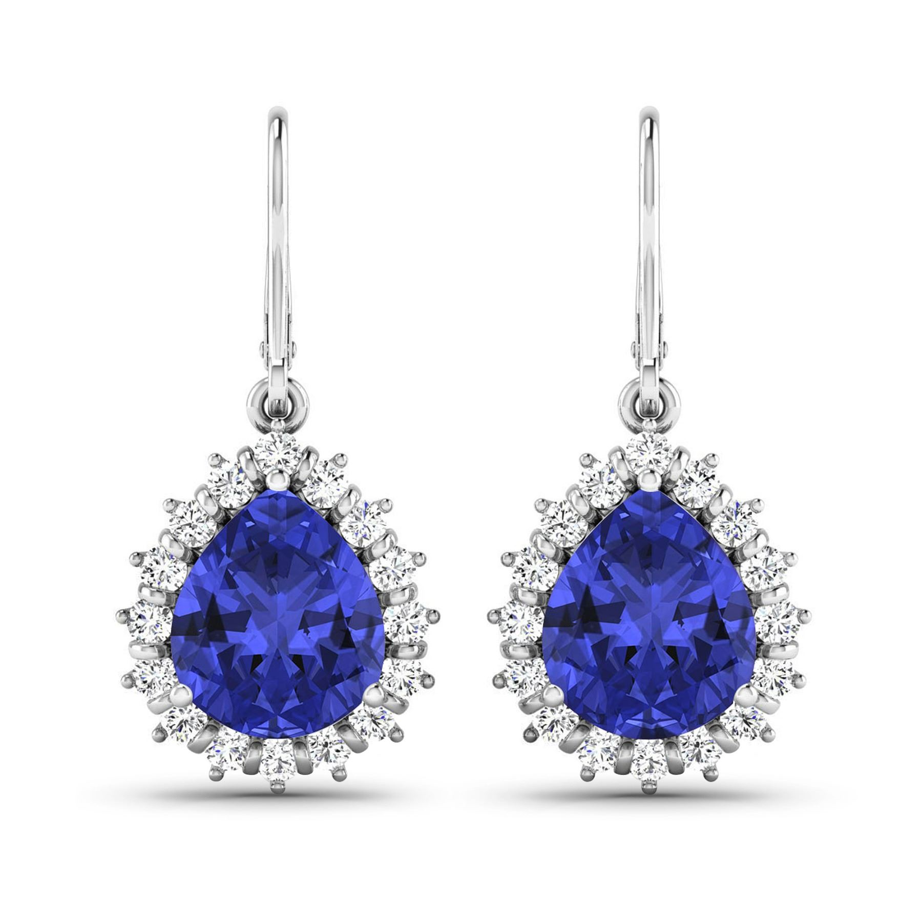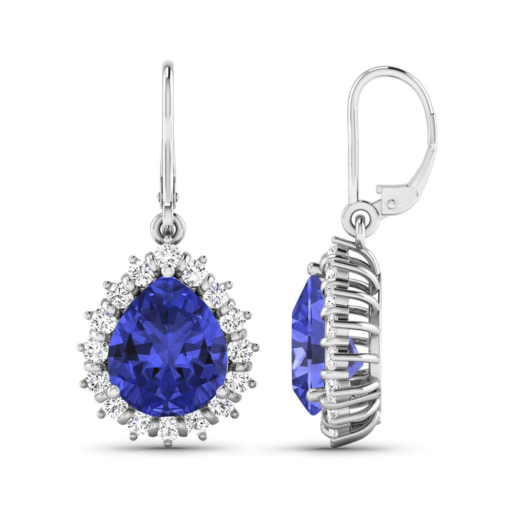 Tanzanite (AA+) Pears 9x7mm - 2Pcs + White Diamond F/C Round 1.50mm - 32Pcs ( Diamond Quality : SI-2/HI ) Total weight of gemstones is 2.88cts. Total Diamond weight is 0.44cts. Total weight of these earrings are 4.38 grams.