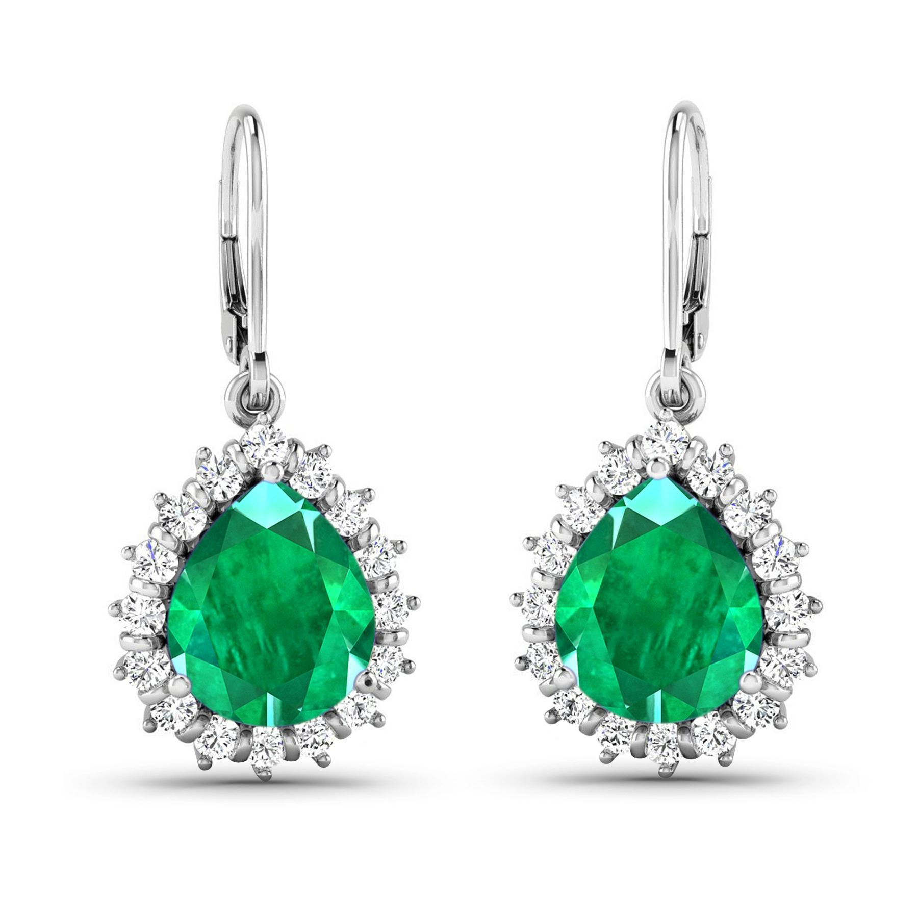 Zambian Emerald (AA) Pears 9x7mm - 2Pcs + White Diamond F/C Round 1.50mm - 32Pcs ( Diamond Quality : SI-2/HI ) Total weight of gemstones is 2.88cts. Total Diamond weight is 0.44cts. Total weight of these earrings are 4.38 grams.
