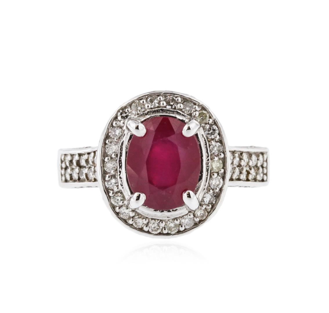 One ring featuring: 14KT white gold weighing 6.40 grams containing one ruby center stone with a total weight of 2.95ct and 76 round diamonds with a total weight of 1.06ct.