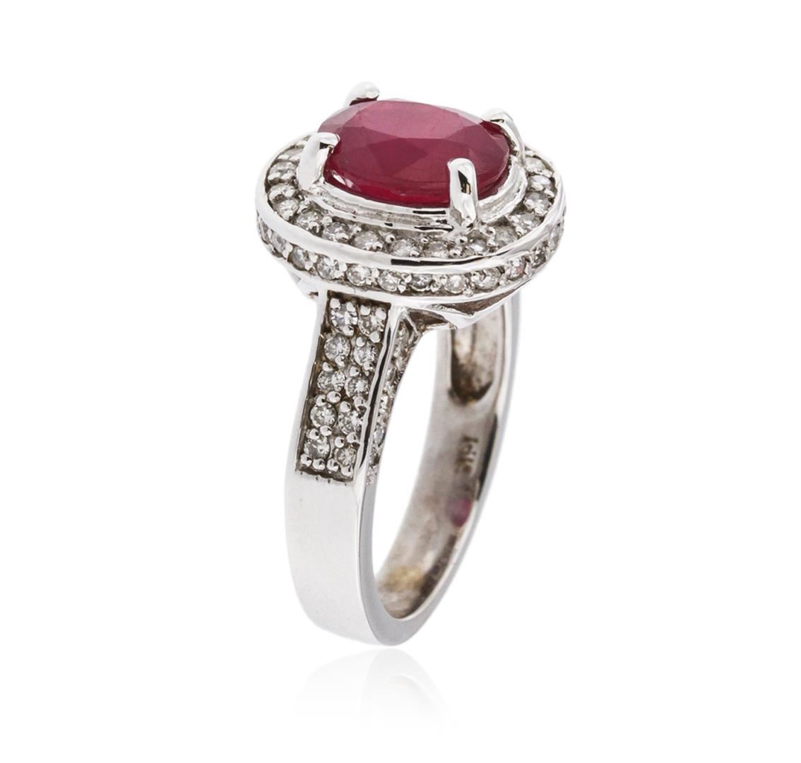 One ring featuring: 14KT white gold weighing 6.40 grams containing one ruby center stone with a total weight of 2.95ct and 76 round diamonds with a total weight of 1.06ct.