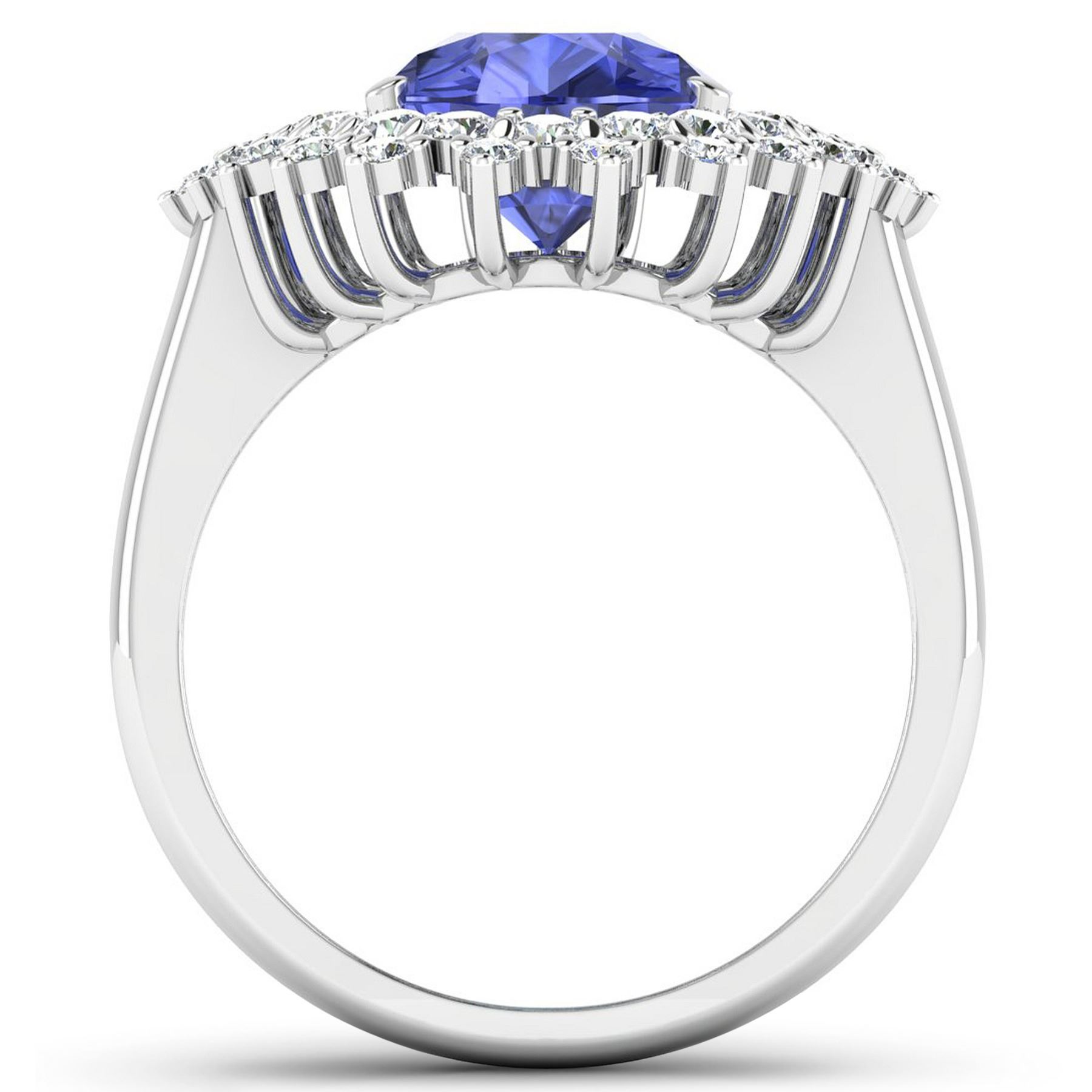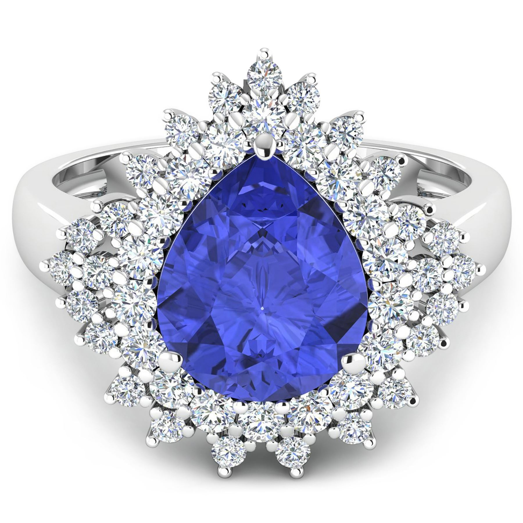 Tanzanite (AA+) Pears 11x9mm - 1Pc + White Diamond F/C Round 2.00mm - 18Pcs + White Diamond F/C Round 1.50mm - 25Pcs ( Diamond Quality : SI-2/HI ) Total weight of gemstone is 2.97cts. Total Diamond weight is 0.89cts. Total weight of this ring is 4.81 grams. Ring size 7.