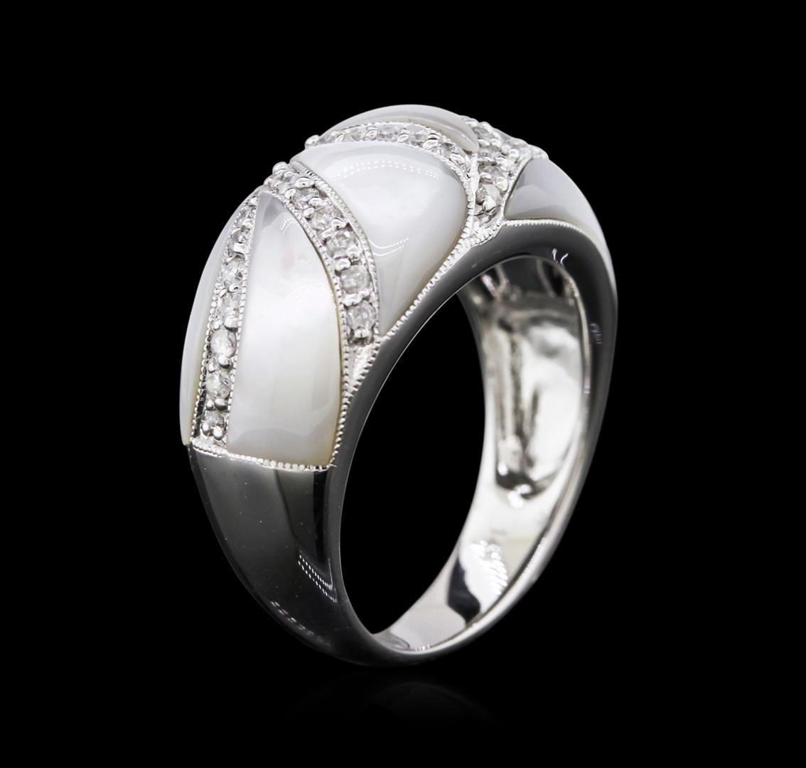 One ring featuring: 14KT white gold weighing 6.17 grams containing six mother of pearls with a total weight of 2.99ct and 41 round diamonds with a total weight of 0.35ct.