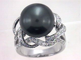 One 14KT White Gold 20.05ct Tahitian Pearl and Diamond Ring. (1) Tahitian Pearl with a total weight of 20.05cts. (69) Diamonds with a total weight of 0.96cts with a color of I and clarity of SI-1 to SI-2. Total weight of this ring is 7.4 grams.