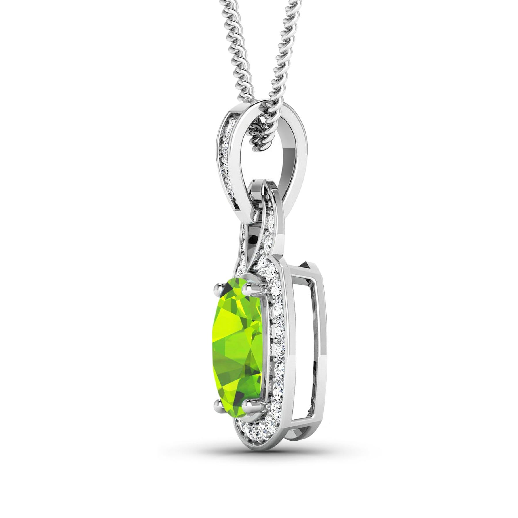 Peridot Cushion 9x7mm - 1Pc + White Diamond F/C Round 1.20mm - 31Pcs ( SI2/HI color ) Total weight of gemstone is 2cts. Total Diamond weight is 0.25cts. Total weight of this pendant is 2.11 grams.