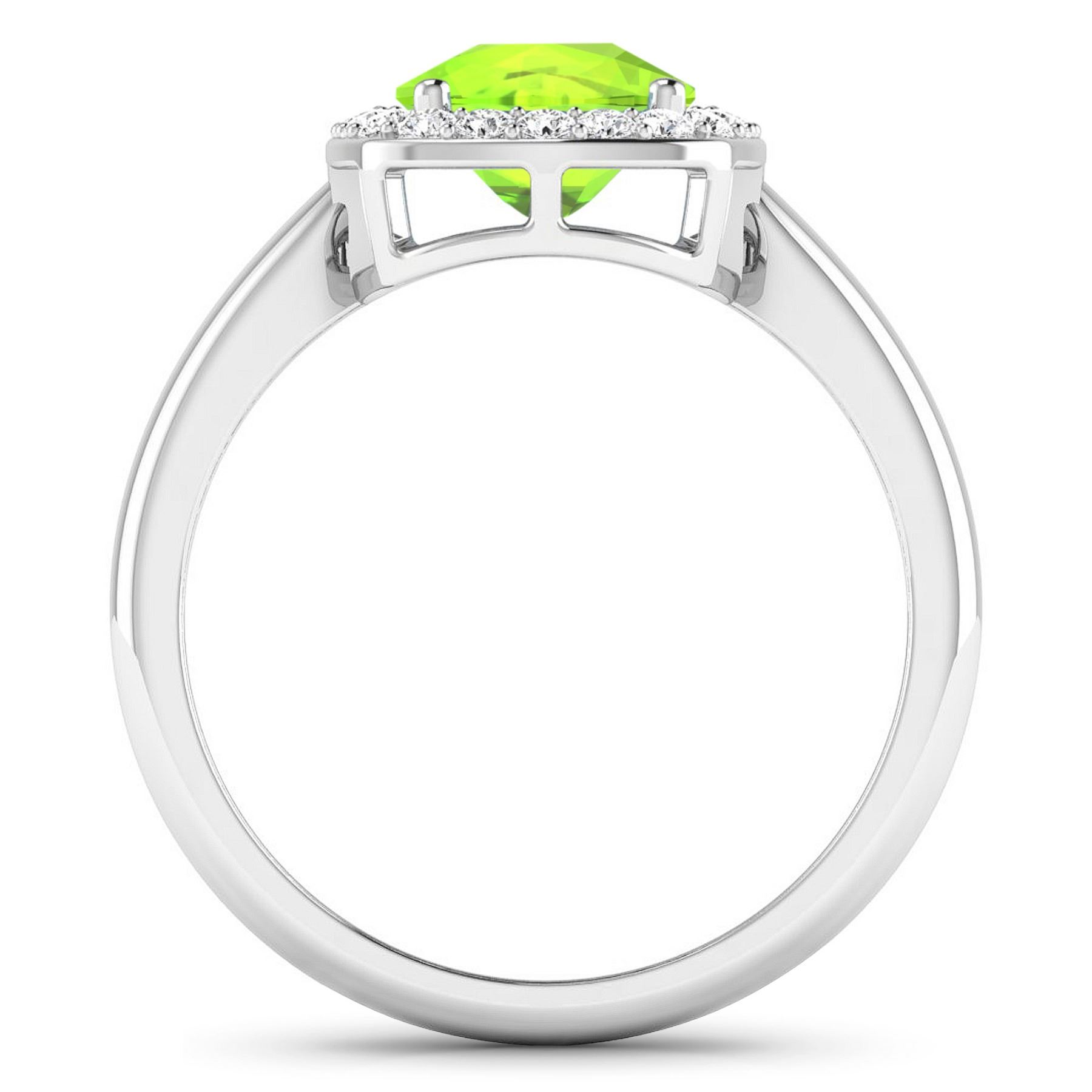 Peridot Cushion 9x7mm - 1Pc + White Diamond F/C Round 1.30mm - 22Pcs ( SI2/HI color ) Total weight of gemstone is 2cts. Total Diamond weight is 0.22cts. Total weight of this ring is 3.02 grams. Ring size 7.