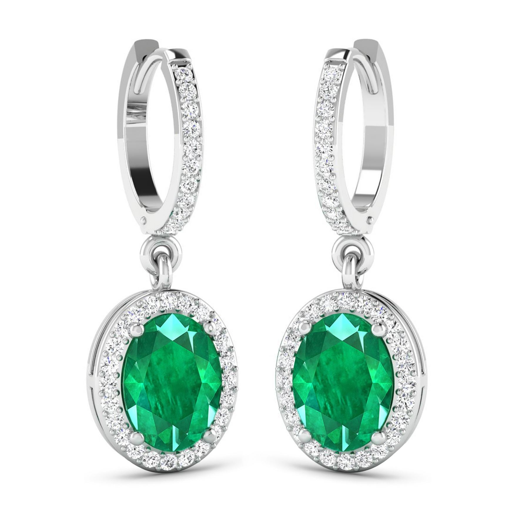 Zambian Emerald (AA) Oval 8x6mm - 2Pcs + White Diamond F/C Round 1.00mm - 70Pcs ( Clip On ) ( I1-I2/I color ) Total weight of gemstones is 2cts. Total Diamond weight is 0.32cts. Total weight of these earrings are 3.26 grams.