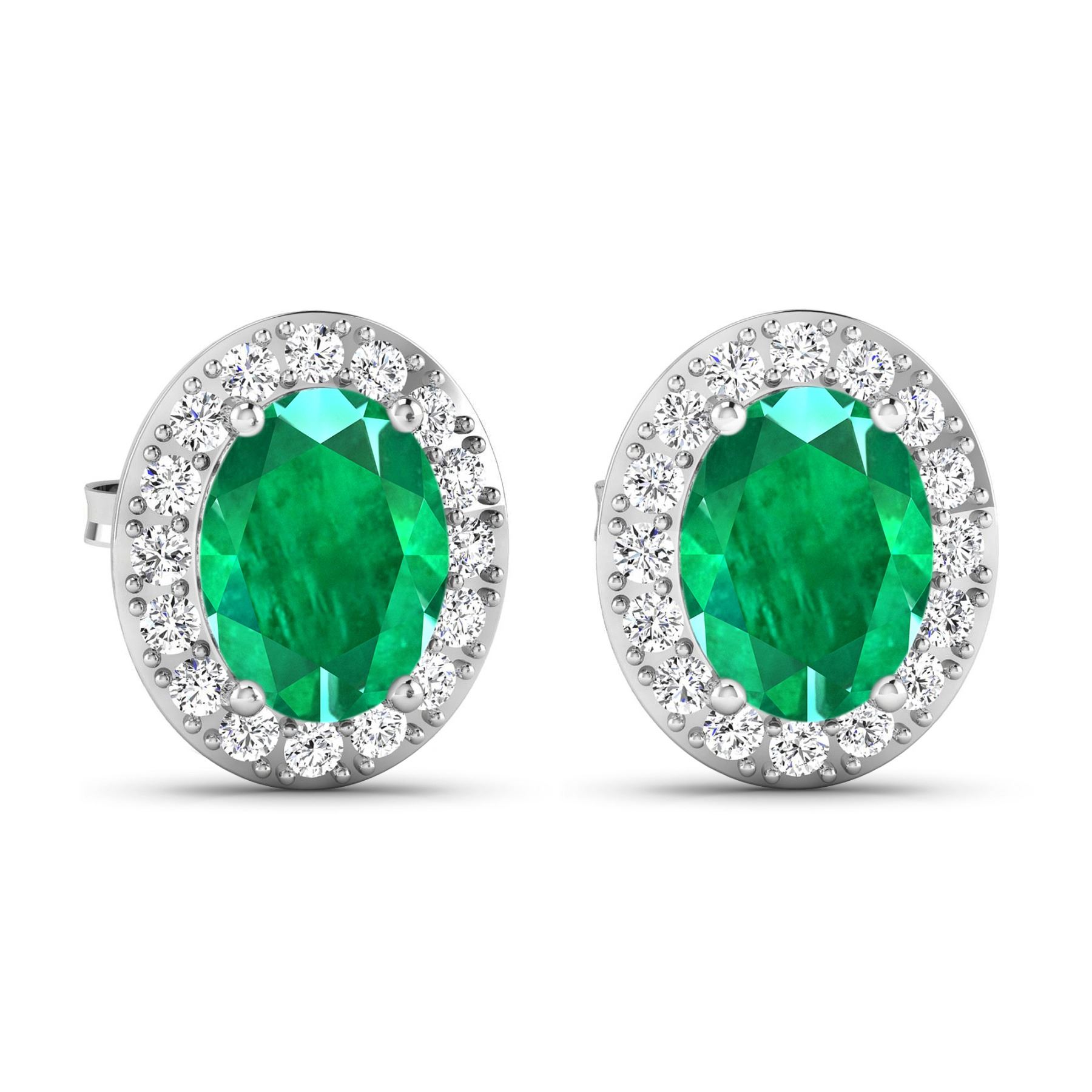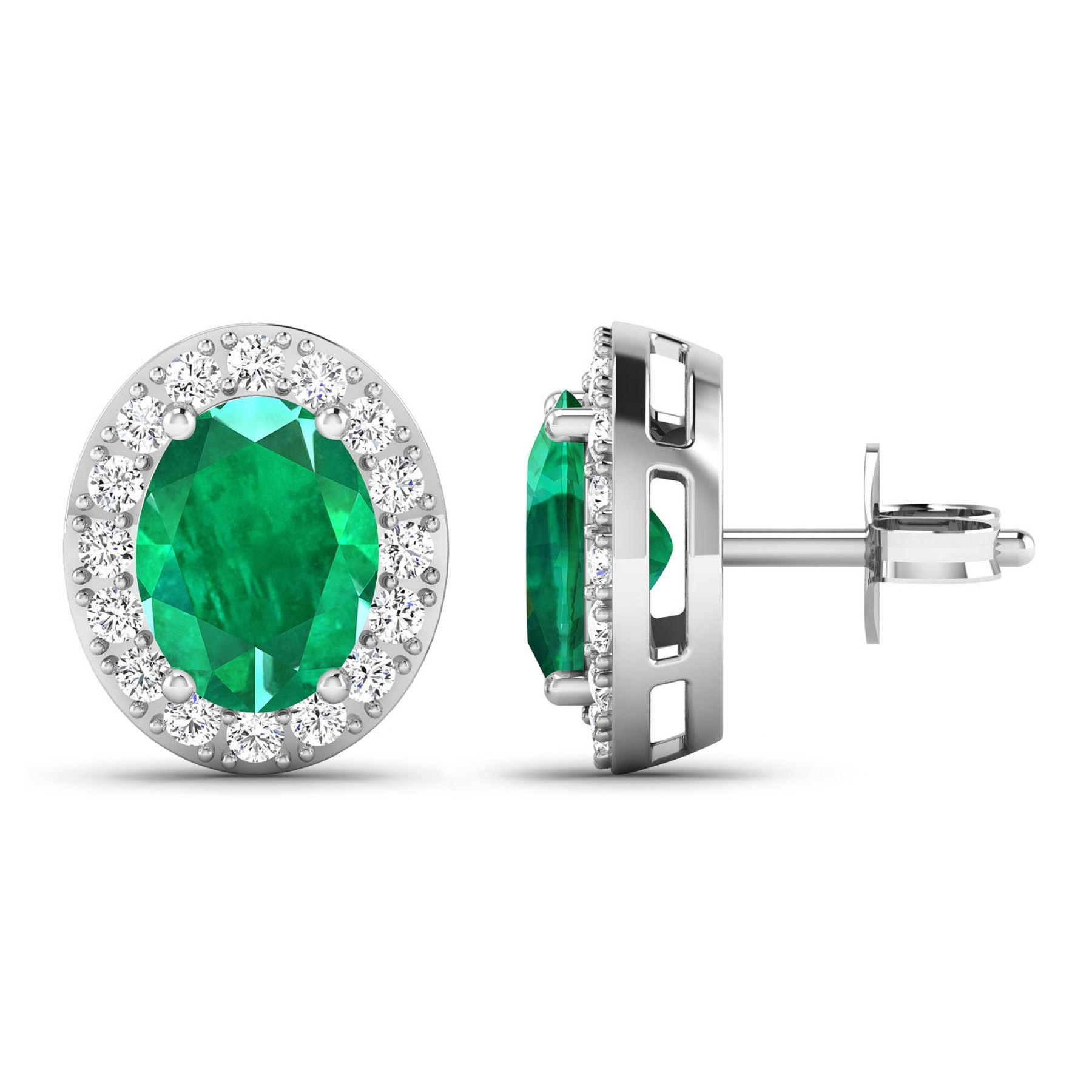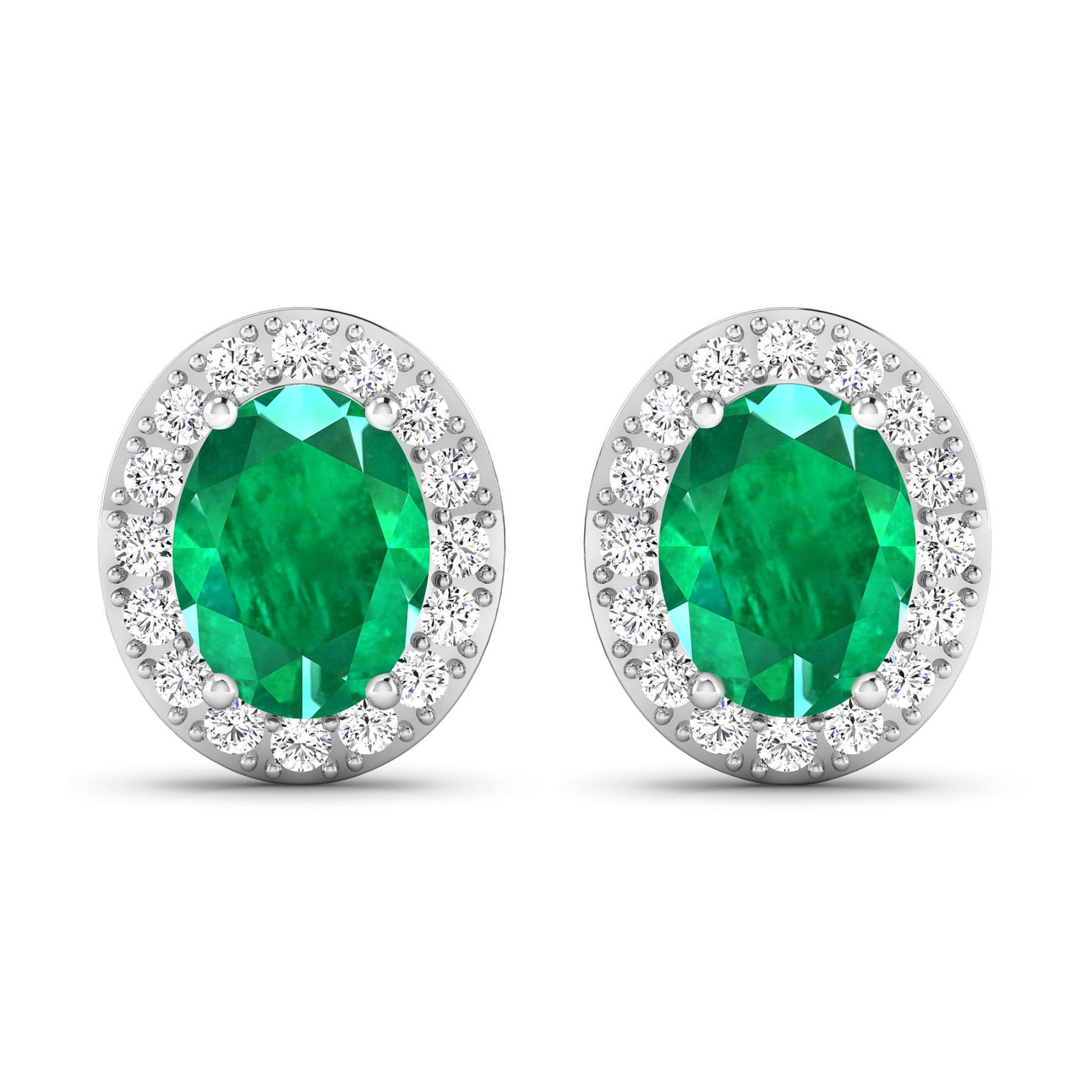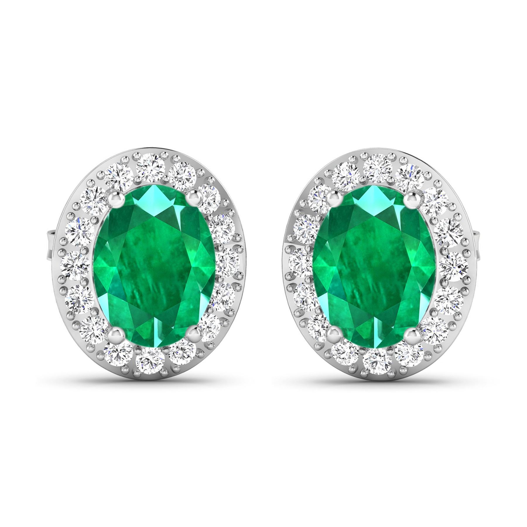 Zambian Emerald (AA) Oval 8x6mm - 2Pcs + White Diamond F/C Round 1.50mm - 32Pcs ( Diamond Quality : SI-2/HI ) ( Push Post ) Total weight of gemstones is 2cts. Total Diamond weight is 0.44cts. Total weight of these earrings are 2.56 grams.