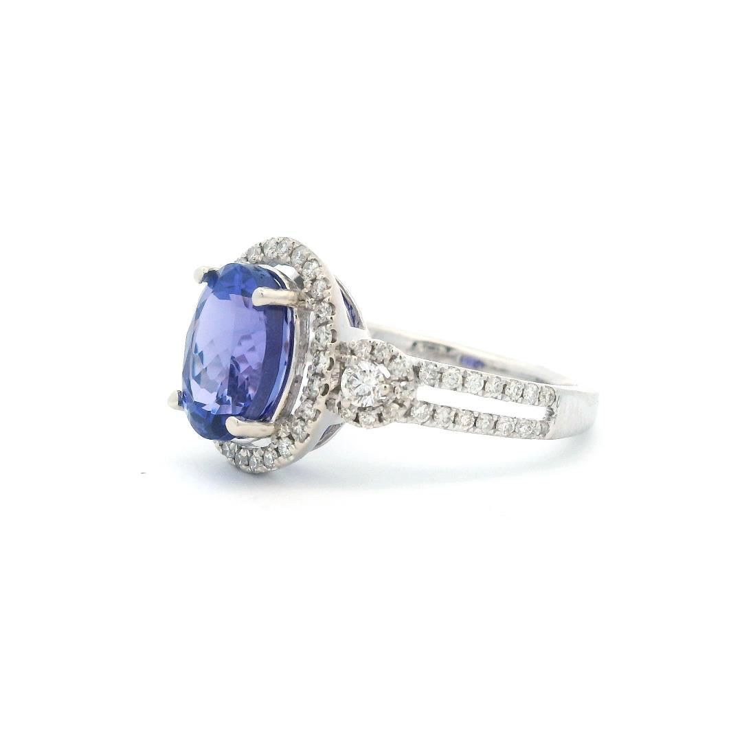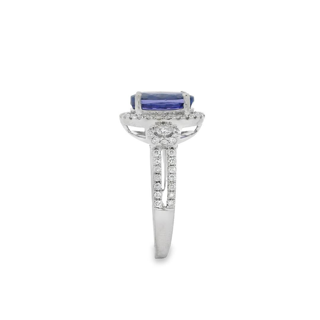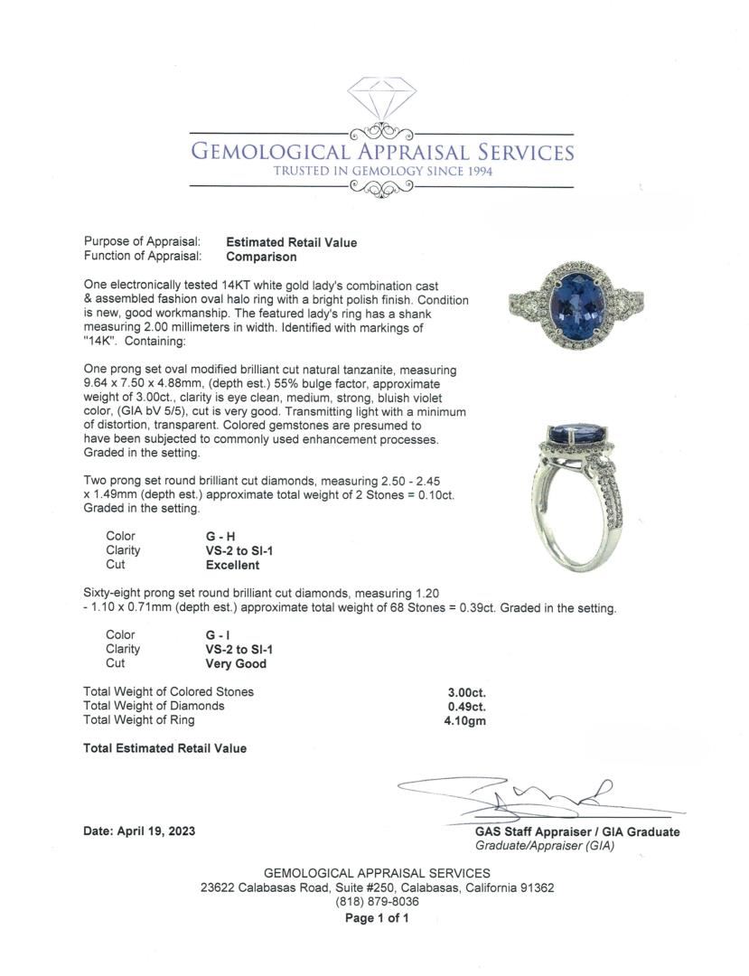 One electronically tested 14KT white gold lady's combination cast & assembled fashion oval halo ring with a bright polish finish. Condition is new, good workmanship. The featured lady's ring has a shank measuring 2.00 millimeters in width. Identified with GAS Appraised.