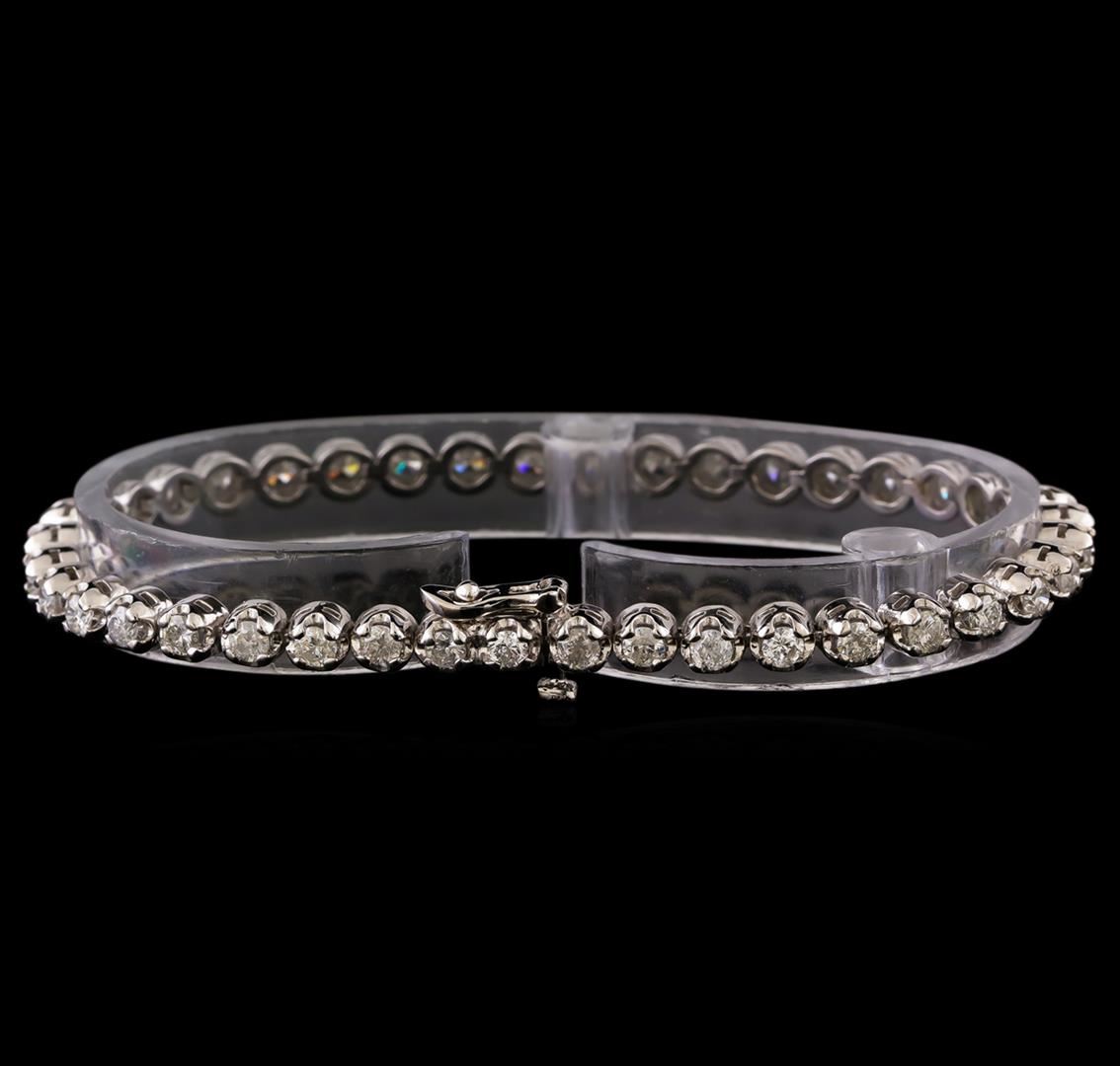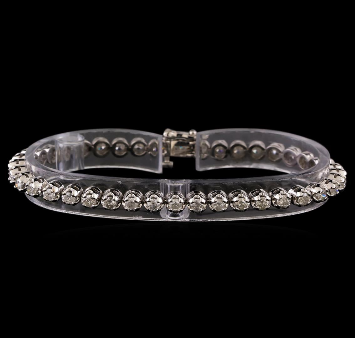 One electronically tested 14KT white gold ladies combination cast & assembled tennis bracelet with a hidden box clasp with safety closer with a bright polish finish. Measurements: 7 in length. Identified with markings of 14K. Condition is new. Containing: Forty-Two prong set round brilliant cut diamonds, measuring 2.70 - 2.70 x 1.62mm (depth est.) approximate total weight of 42 Stones = 3.02ct. Clarity: I-1 to I-2. Color: I - J, Cut is Good. All diamonds are graded in the mounting, unless otherwise stated. Total Weight of Diamonds 3.02ct. Total Weight of Bracelet 13.80 grams. GGL Appraised at $7,825.00.