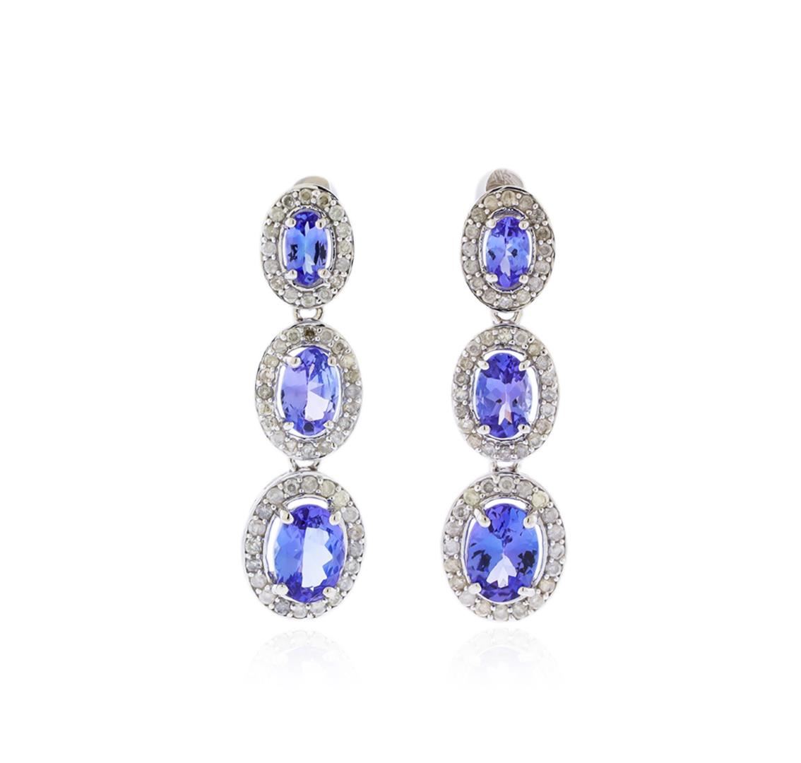 14KT White Gold 3.05ctw Tanzanite and Diamond Dangle Earrings