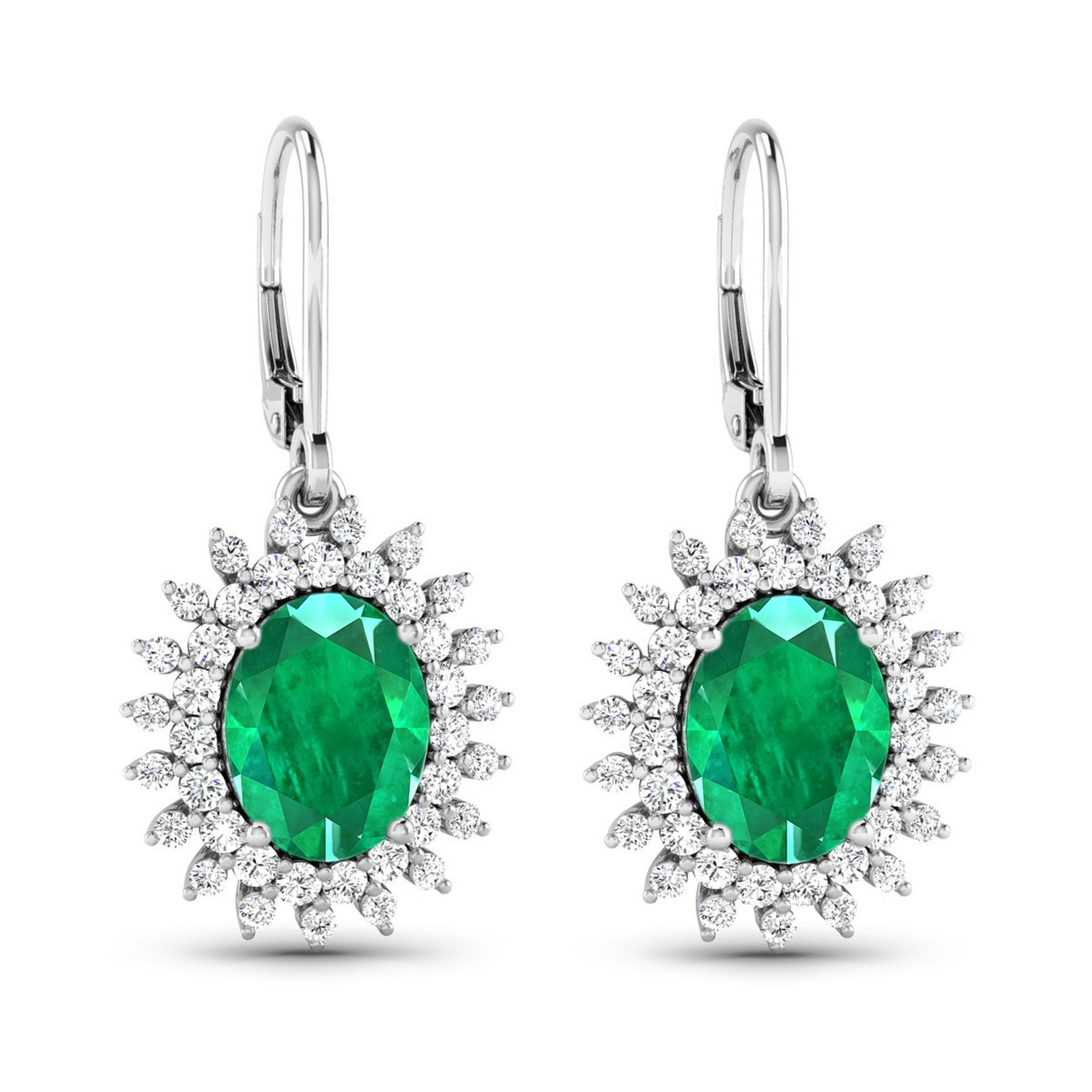 Zambian Emerald (AA) Oval 9x7mm - 2Pcs + White Diamond F/C Round 1.50mm - 38Pcs + White Diamond F/C Round 1.20mm - 38Pcs ( Diamond Quality : SI-2/HI ) Total weight of gemstones is 3.06cts. Total Diamond weight is 0.83cts. Total weight of these earrings are 4.2 grams.
