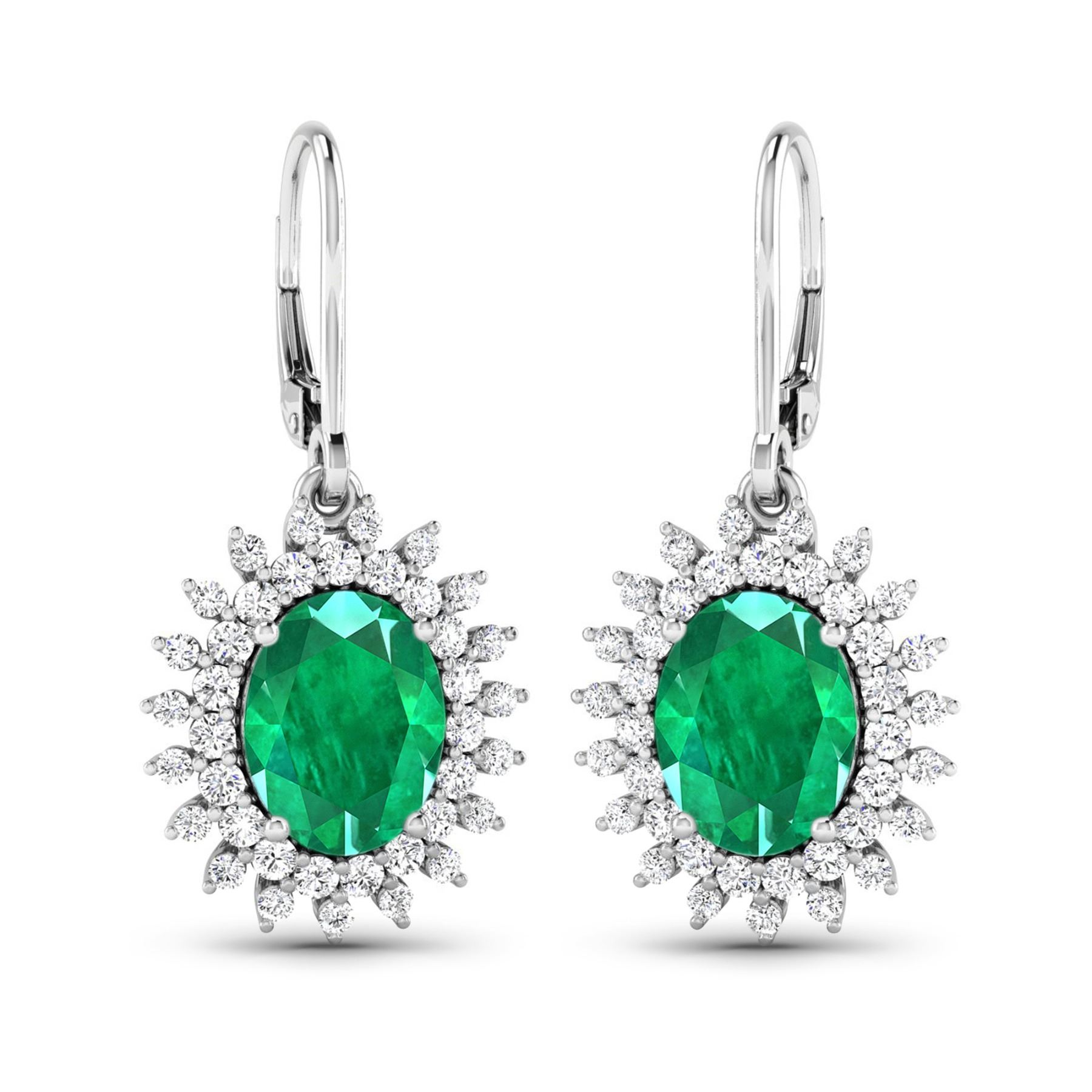 Zambian Emerald (AA) Oval 9x7mm - 2Pcs + White Diamond F/C Round 1.50mm - 38Pcs + White Diamond F/C Round 1.20mm - 38Pcs ( Diamond Quality : SI-2/HI ) Total weight of gemstones is 3.06cts. Total Diamond weight is 0.83cts. Total weight of these earrings are 4.2 grams.