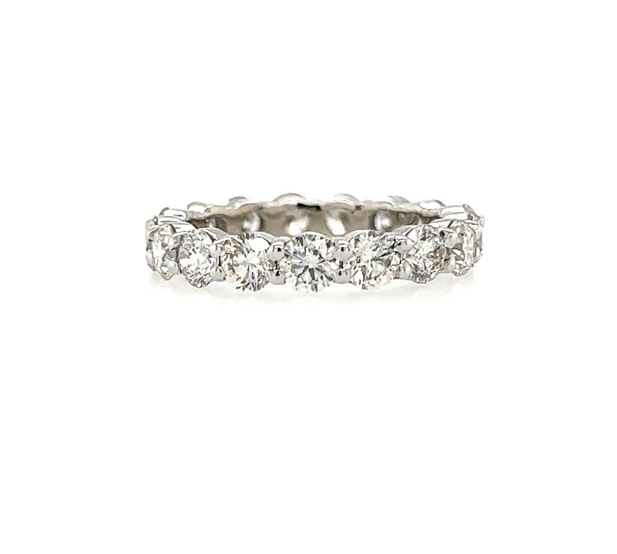 Appraisal No: 000022141005 One electronically tested 14KT white gold lady's cast fashion eternity ring with a bright polish finish. Condition is new, good workmanship. The featured lady's ring has a shank measuring 3.60 millimeters wide. Containing: Seventeen prong set round brilliant cut diamonds, measuring 3.68 - 3.60 x 2.26mm (depth est.) approximate total weight of 17 Stones = 3.10ct. Graded in the setting. Color H-1 Clarity VS-2 to SI-1 Cut Very Good Total Weight of Diamonds 3.10ct. Total Weight of Ring 3.20gm Total Estimated Retail Value $ 11960.00