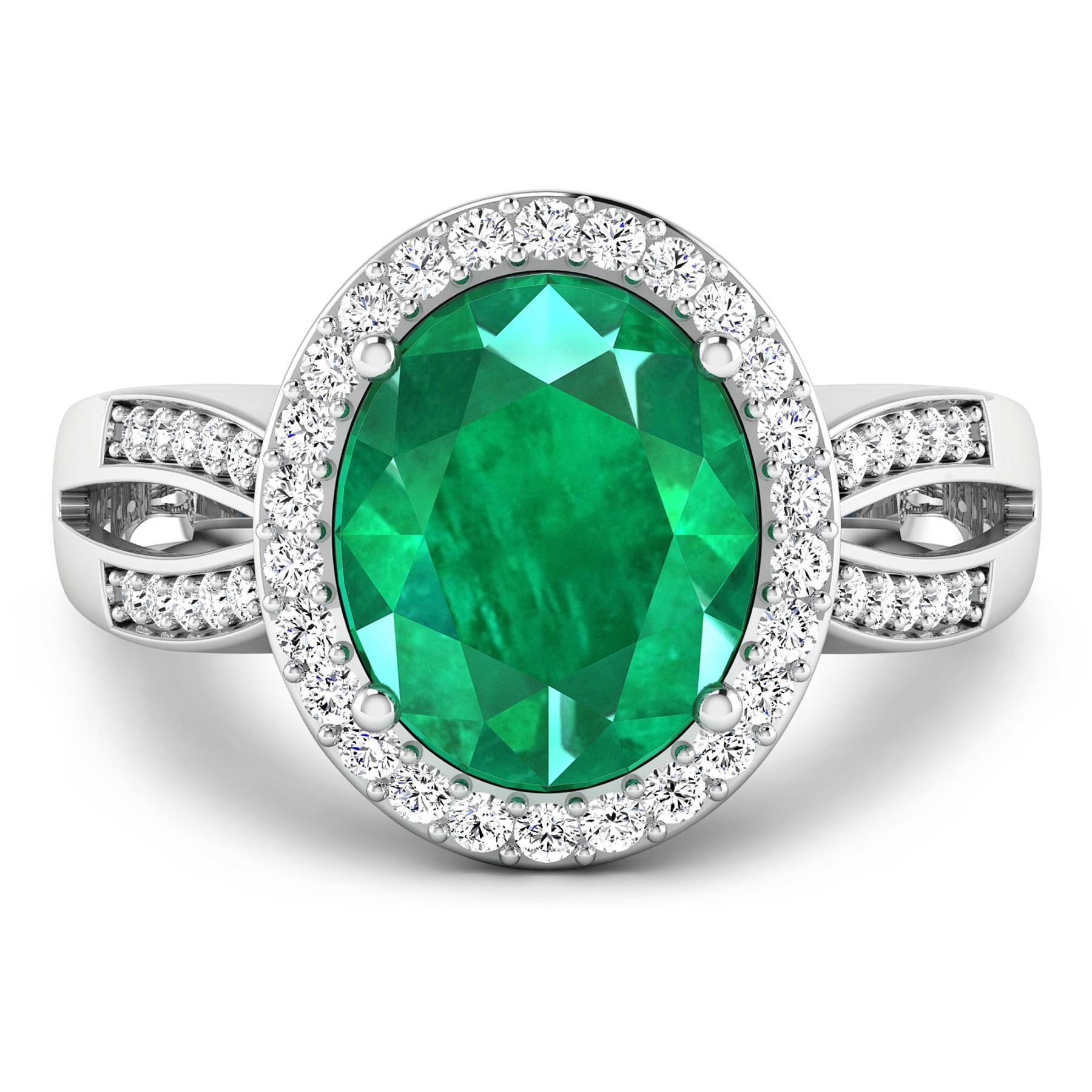 Zambian Emerald (AA) Oval 11x9mm - 1Pc + White Diamond F/C Round 1.30mm - 26Pcs + White Diamond F/C Round 1.10mm - 20Pcs ( SI-2/HI ) Total weight of gemstone is 3.14cts. Total Diamond weight is 0.39cts. Total weight of this ring is 4.2 grams. Ring size 7.