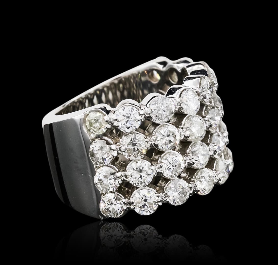 One electronically tested 14KT white gold ladies combination cast & assembled diamond ring with a bright polish finish. Identified with markings of "14K". Condition is new. Containing: Thirty-Two prong set round brilliant cut diamonds, measuring 3.00 - 3.00 x 1.80mm (depth est.) approximate total weight of 32 Stones = 3.16ct. Clarity: SI-2 to I-2. Color: I - K, Cut is Good. All diamonds are graded in the mounting, unless otherwise stated. Total Weight of Diamonds 3.16ct. Total Weight of Ring 17.10 grams. GGL Appraised at $9,610.00.