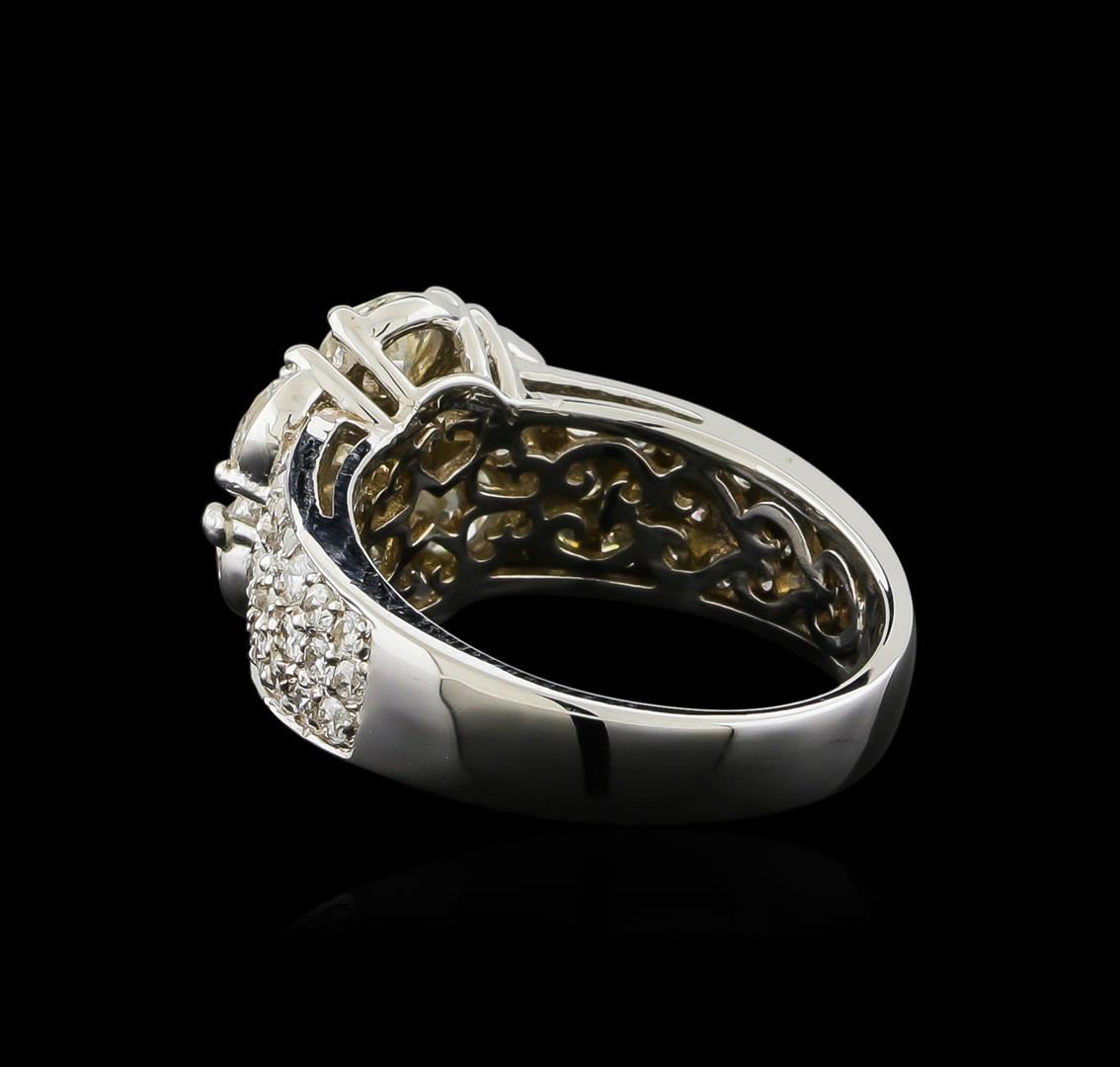 One electronically tested 14KT white gold ladies combination cast & assembled ring with a bright polish finish. Identified with markings of "K14". Condition is new. Containing: Seven prong set round brilliant cut diamonds, measuring 4.50 - 4.50 x 2.70mm (depth est.) approximate total weight of 7 Stones = 2.34ct. Clarity: SI-1 to I-1. Color: J - K, Cut is Good. Thirty-Six prong set round brilliant cut diamonds, measuring 2.00 - 1.70 x 1.11mm (depth est.) approximate total weight of 36 Stones = 0.83ct. Clarity: SI-2 to I-1. Color: I - J, Cut is Good. All diamonds are graded in the mounting, unless otherwise stated. Total Weight of Diamonds 3.17ct. Total Weight of Ring 6.70 grams. GGL Appraised at $13,580.00.