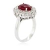One electronically tested 14KT white gold Ladies combination cast & assembled ring with a bright polish finish. Condition is new. Identified with markings of "14K". Containing: One prong set pear modified brilliant cut natural ruby, measuring 10.47 x 7.90 x 4.86mm, approximate. Total Weight of 3.22ct., clarity is heavily included, type II, medium dark, moderately strong, strongly purplish red color, (GIA stpR 6/4), cut is good. Thirty-Nine prong set round brilliant cut diamonds, measuring 1.80 - 1.50 x 0.99mm (depth est.) approximate. Total Weight of 39 Stones = 0.64ct. Clarity: I-1 to I-2. Color: J - K, Cut is Good. Colored gemstones are presumed to have been subjected to commonly used enhancement processes. All diamonds and colored gemstones are graded in the mounting, unless otherwise stated. Total Weight of Colored Stones 3.22ct. Total Weight of Diamonds 0.64ct. Total Weight of Ring 6.50 grams. GGL Appraised at $4,620.00.