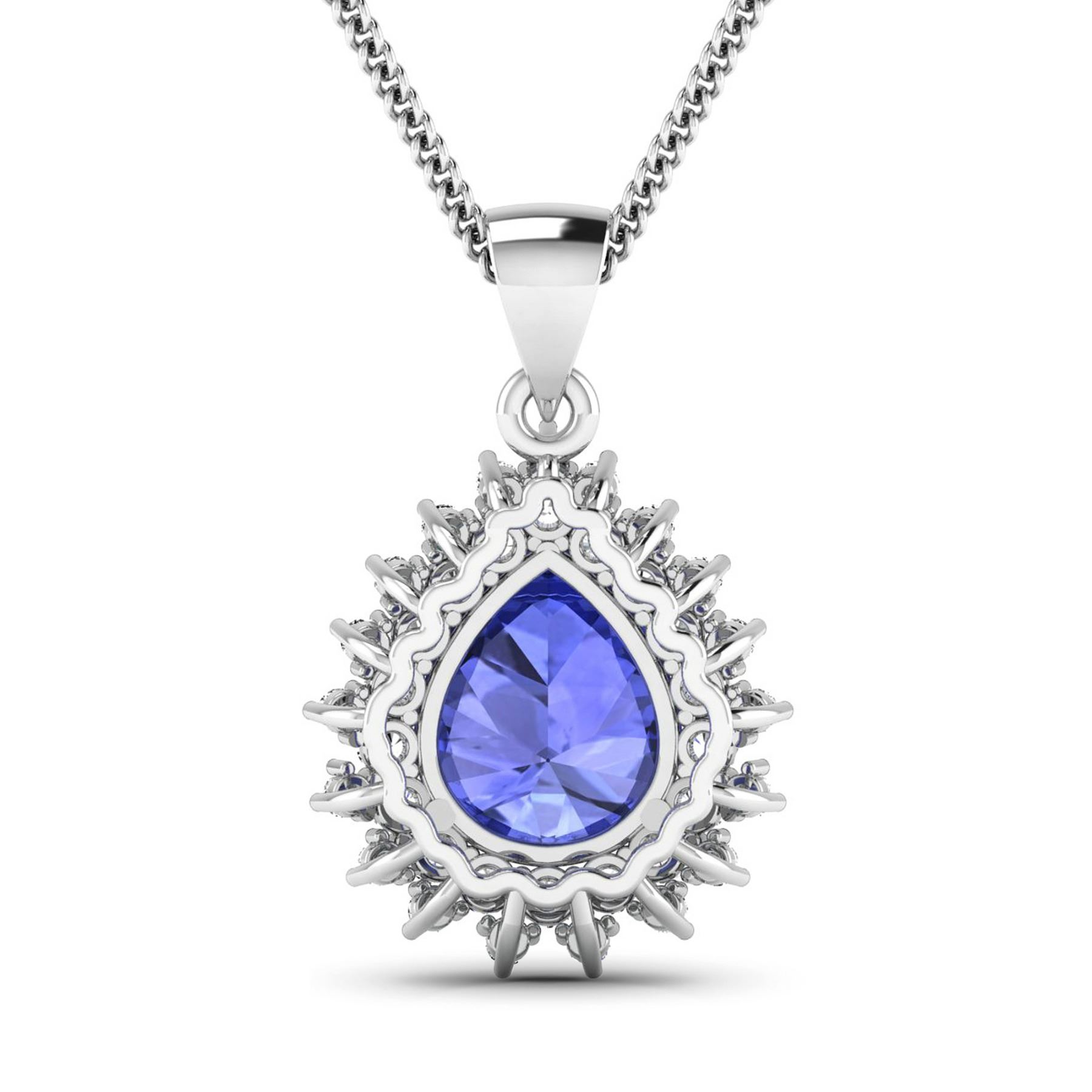 Tanzanite (AA+) Pears 11x9mm - 1Pc + White Diamond F/C Round 2.00mm - 18Pcs + White Diamond F/C Round 1.50mm - 19Pcs ( Diamond Quality : SI-2/HI ) Total weight of gemstone is 3.25cts. Total Diamond weight is 0.8cts. Total weight of this pendant is 3.15 grams.