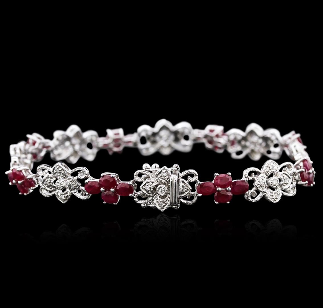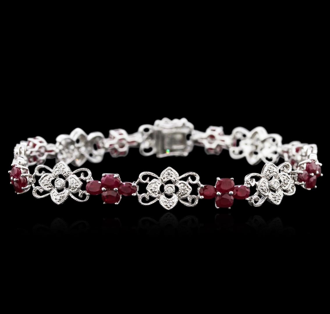One bracelet featuring: 14KT white gold weighing 9.37 grams containing 7 rubies with a total weight of 3.29ct and 56 round diamonds with a total weight of 0.50ct.