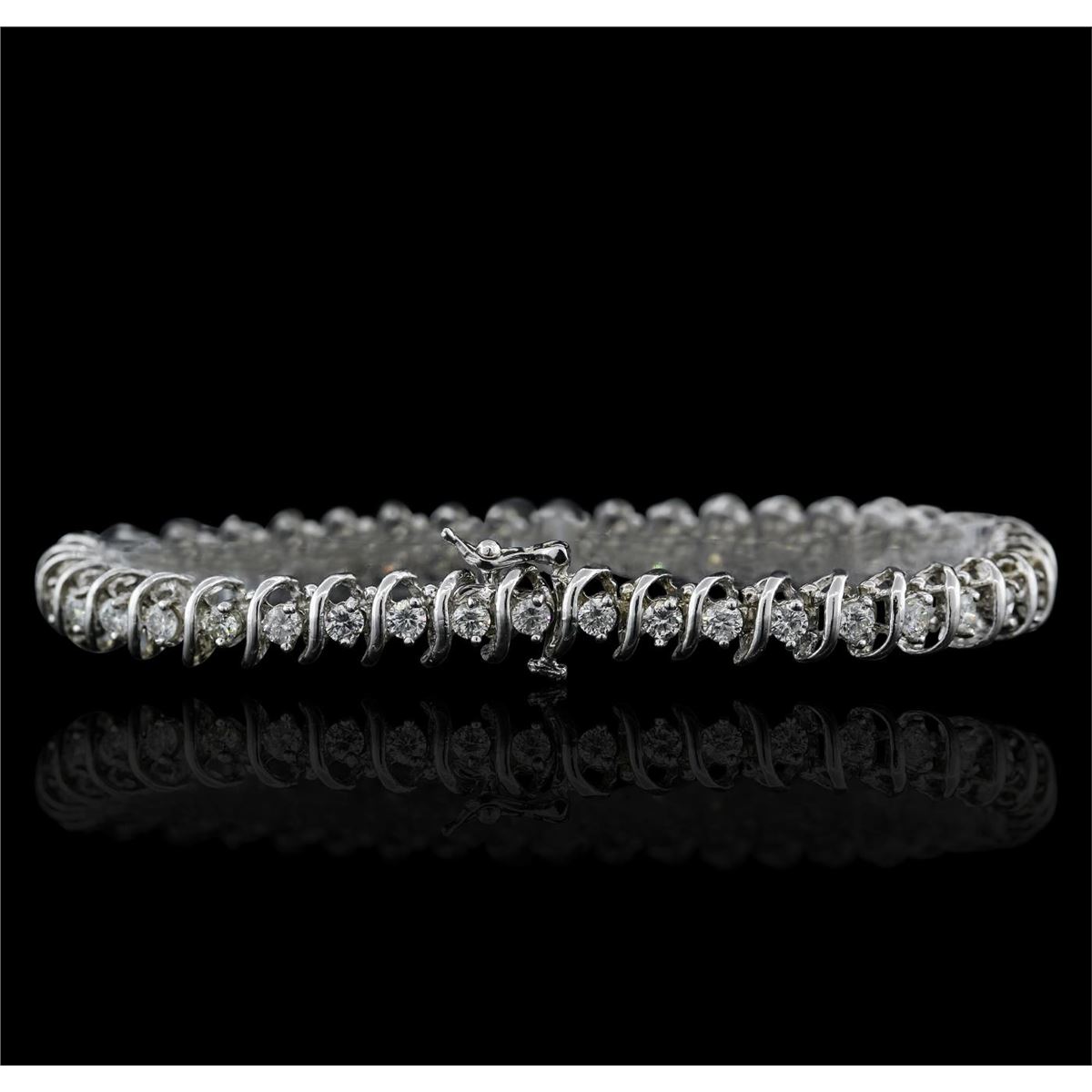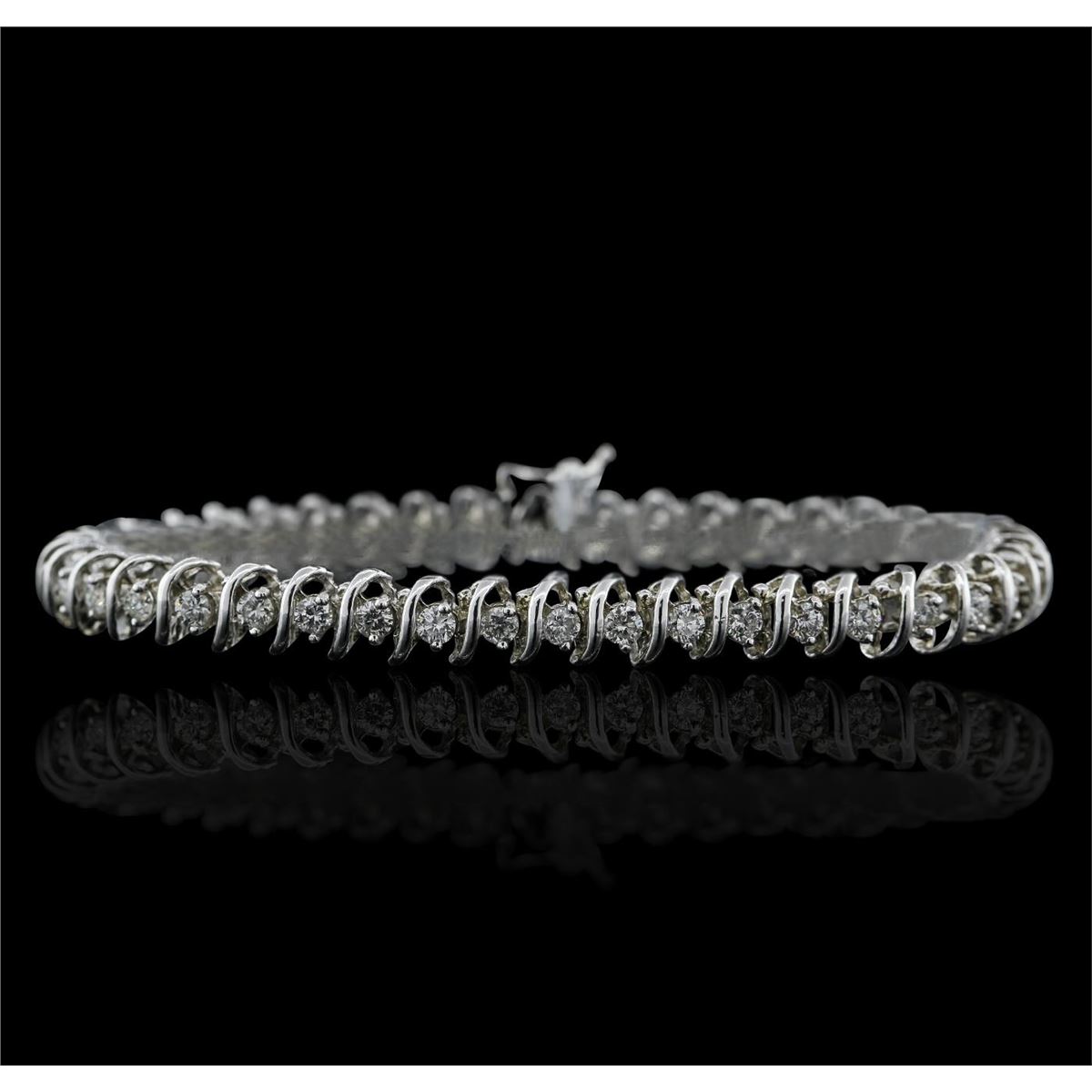 One electronically tested 14KT white gold ladies combination cast & assembled tennis bracelet with a hidden box clasp with a bright polish finish. Condition is new. Measurements: 7" in length. Containing: Forty-Two prong set round brilliant cut diamonds, measuring 2.80 - 2.80 x 1.68mm (depth est.) approximate total weight of 42 Stones = 3.37ct. Clarity: SI-2 to I-1. Color: H - J, Cut is Good. All diamonds are graded in the mounting, unless otherwise stated. Total Weight of Diamonds 3.37ct. Total Weight of Bracelet 15.10 grams. GGL Appraised at $14,100.00.