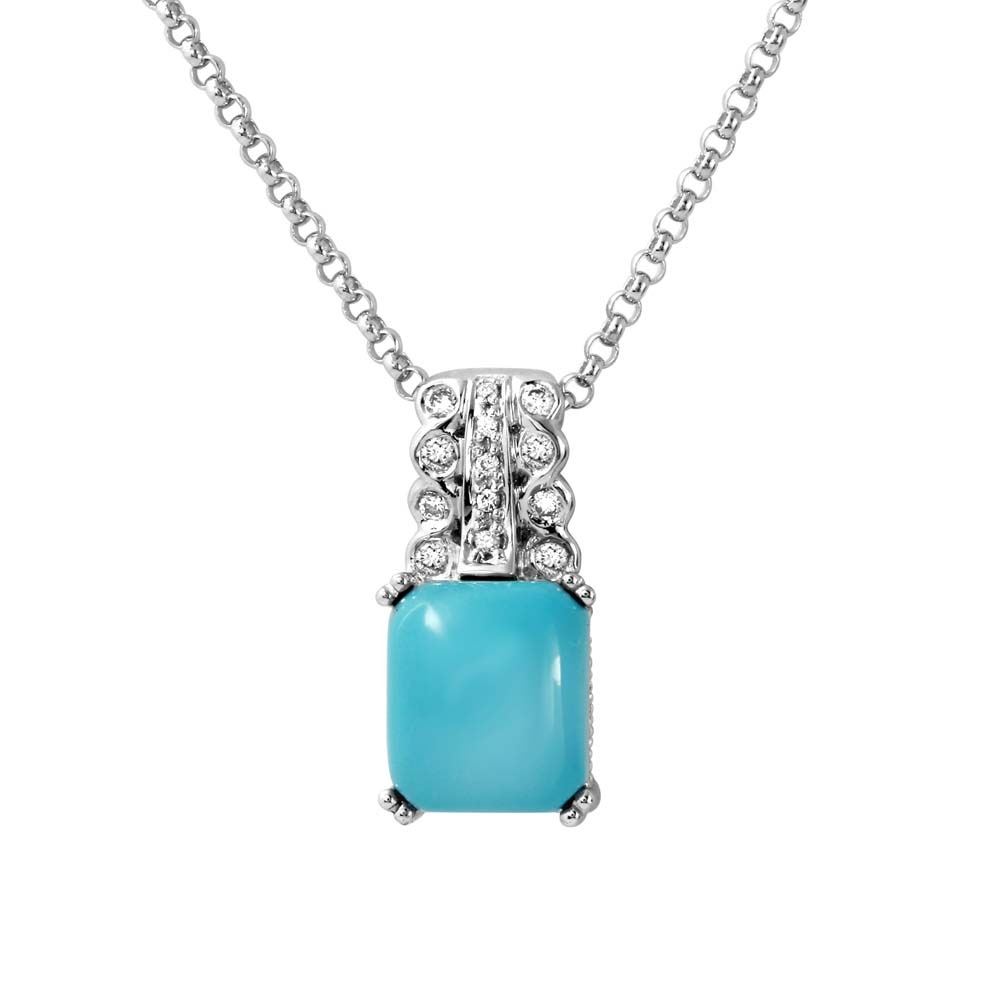 14KT White Gold 3.46ct Turquoise and Diamond Pendant with Chain