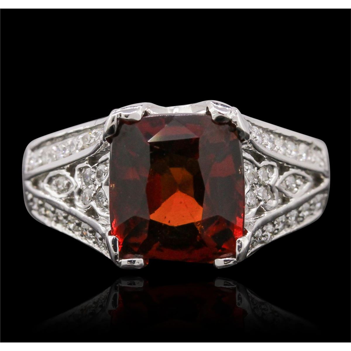 One ring featuring: 14KT white gold with a total weight of 6.91 grams, garnet with a total weight of 3.50ct, and diamonds with a total weight of 0.75ctw.