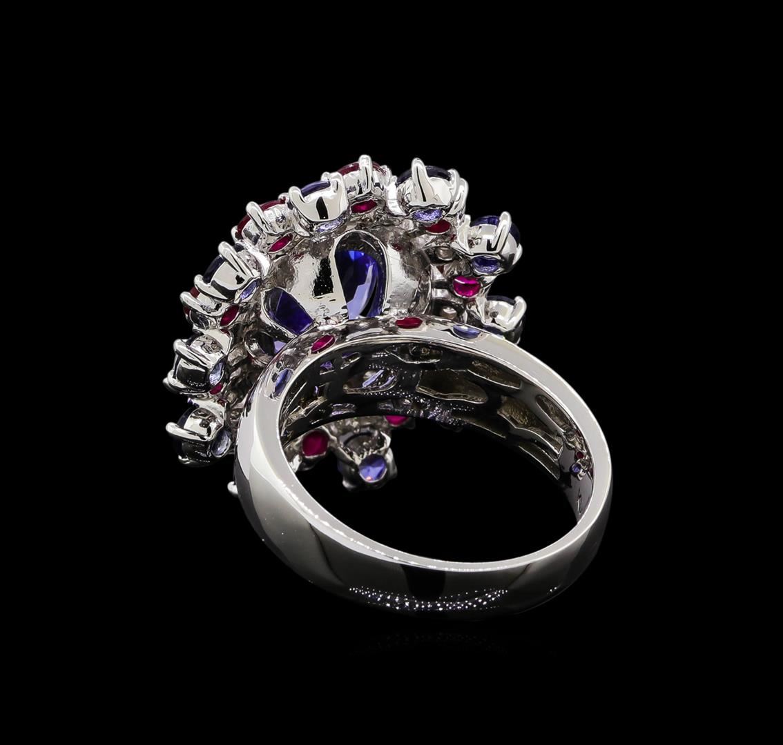 14KT White Gold 3.58 ctw Tanzanite, Sapphire, Ruby and Diamond Ring