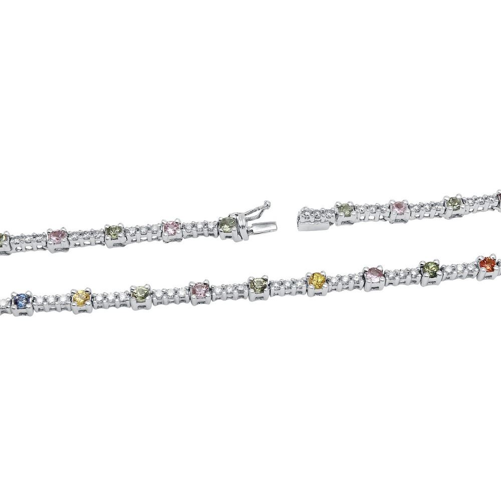 One 14KT White Gold 3.60ctw Multi Color Sapphire and Diamond Necklace. (46) Multi color sapphires with a total weight of 3.60cts. (138) Diamonds with a total weight of 2.40cts with a color of I and clarity of I-1. Total weight of this necklace is 18.73 grams.