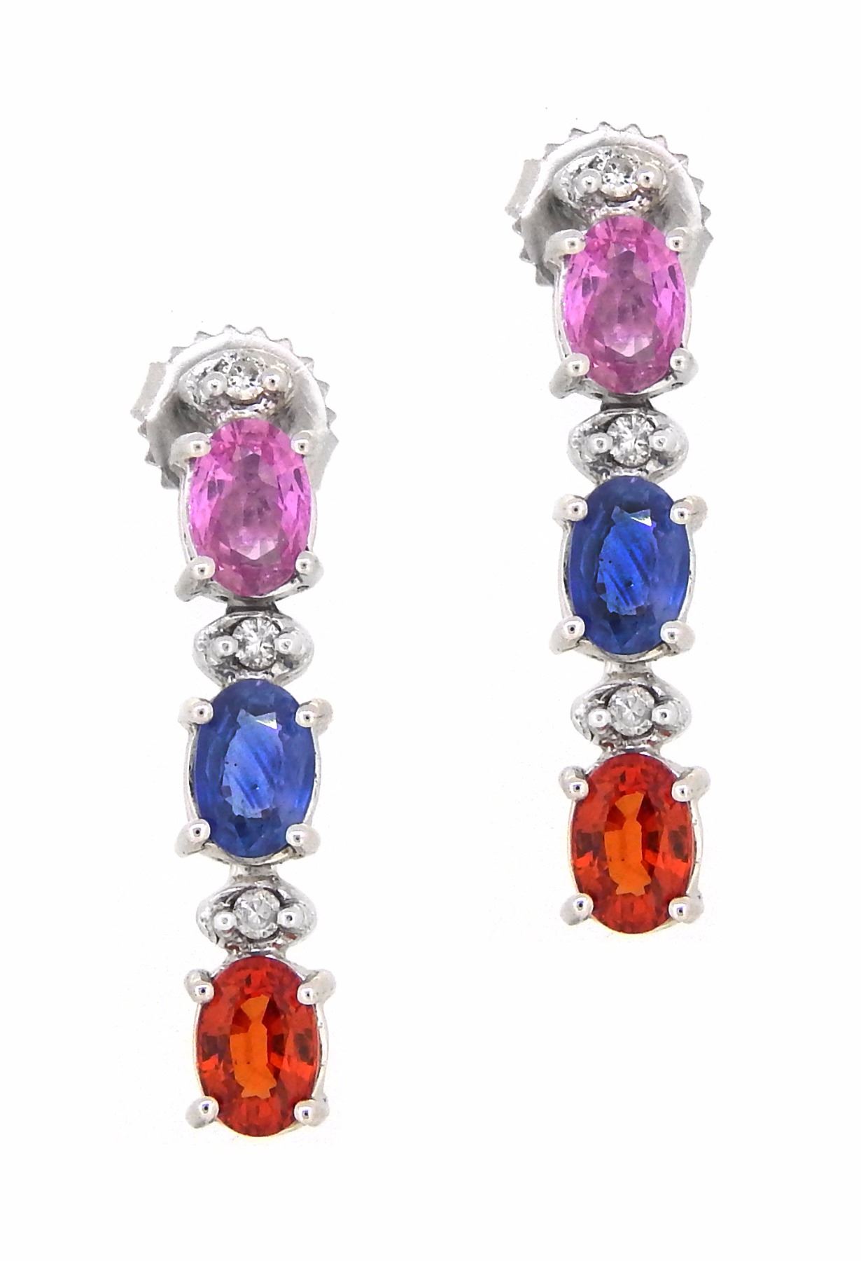14KT White Gold 3.65ctw Multi Color Sapphire and Diamond Earrings