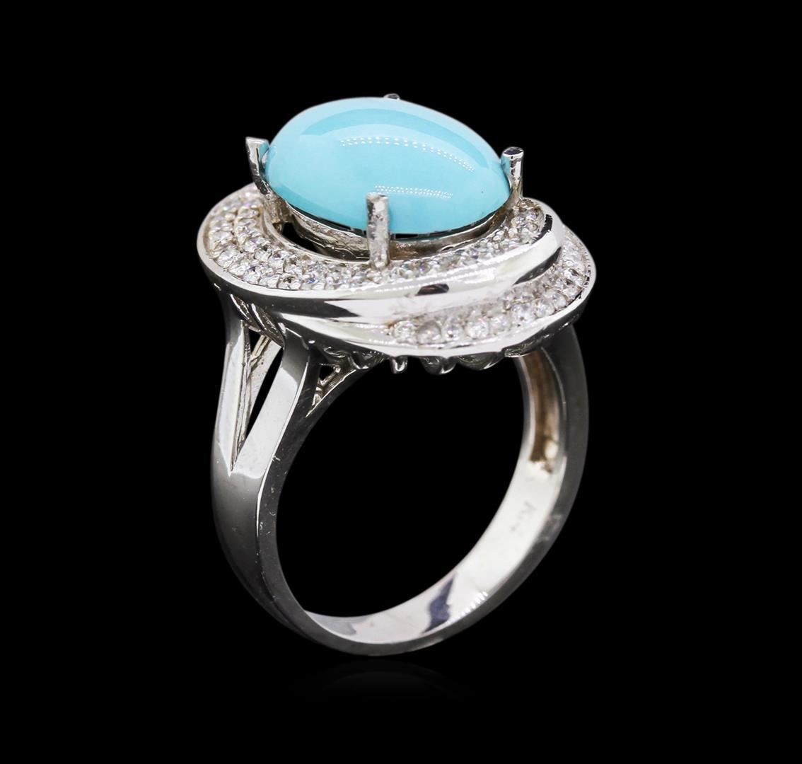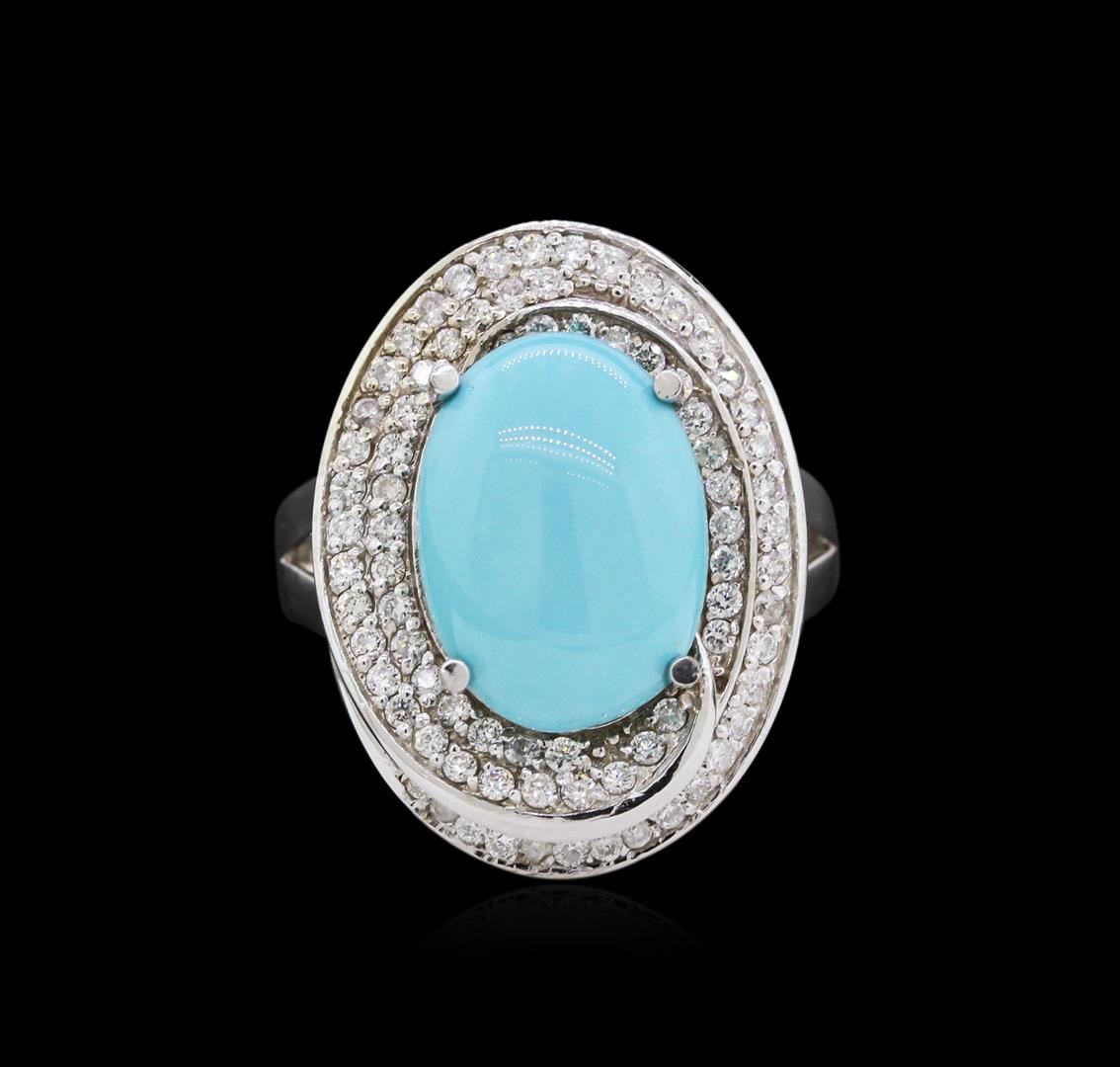 One ring featuring: 14KT white gold weighing 6.68 grams containing one turquoise with a total weight of 3.79ct and diamonds with a total weight of 0.67ct.
