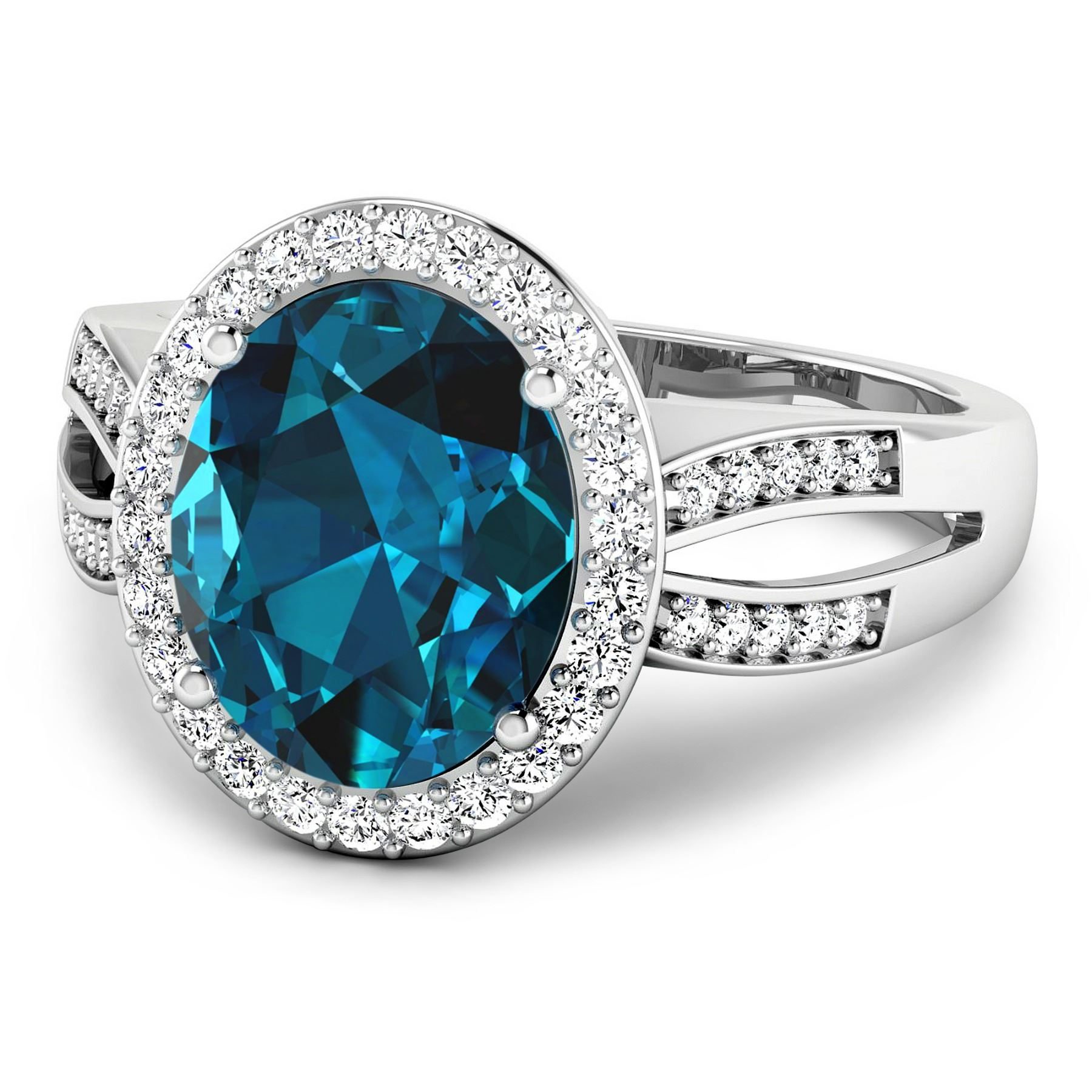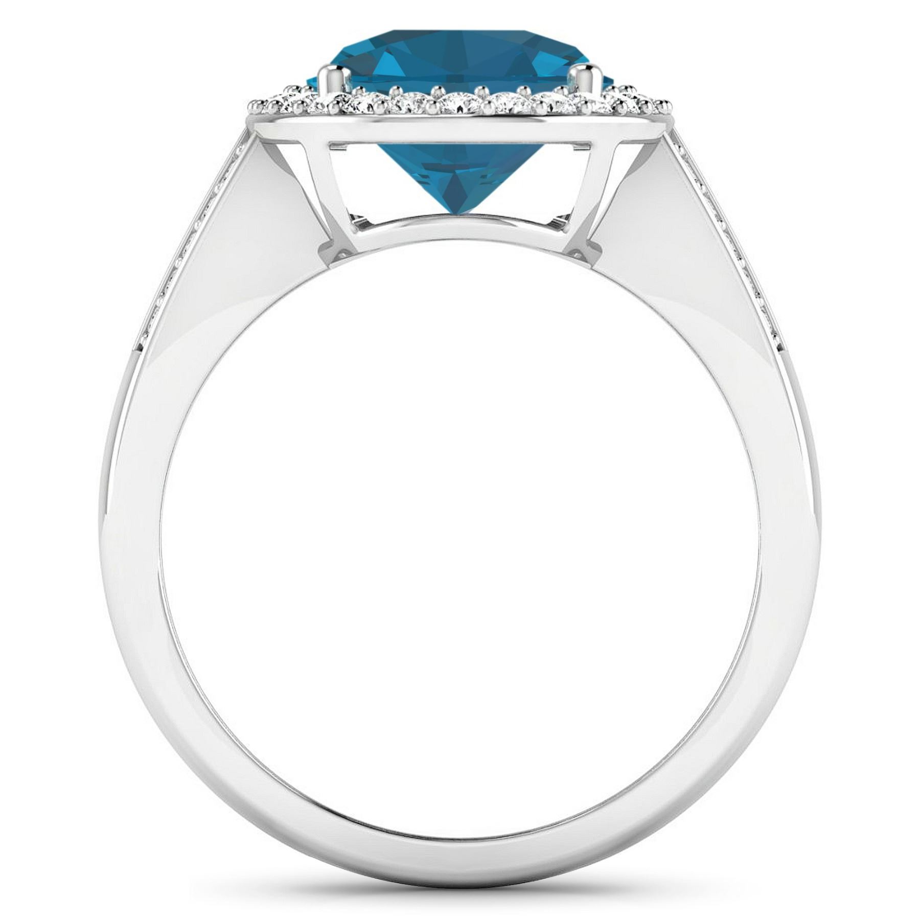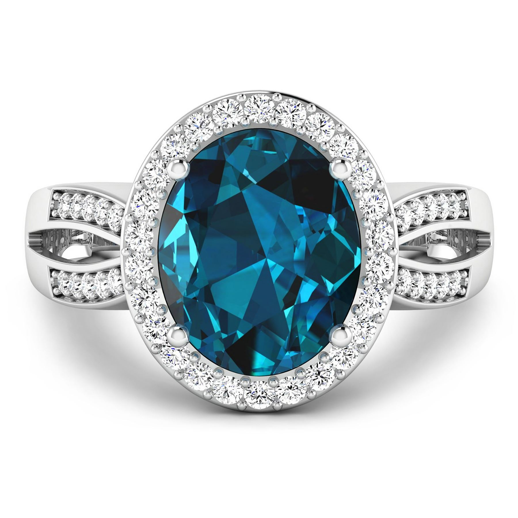 London Blue Topaz Oval 11x9mm - 1Pc + White Diamond F/C Round 1.30mm - 26Pcs + White Diamond F/C Round 1.10mm - 20Pcs ( SI-2/HI ) Total weight of gemstone is 3.7cts. Total Diamond weight is 0.39cts. Total weight of this ring is 4.31 grams. Ring size 7.