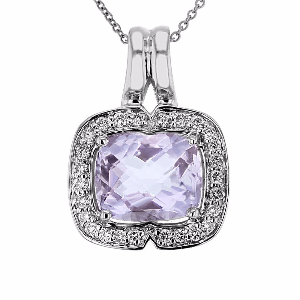 14KT White Gold 3.80ct Amethyst and Diamond Pendant with Chain