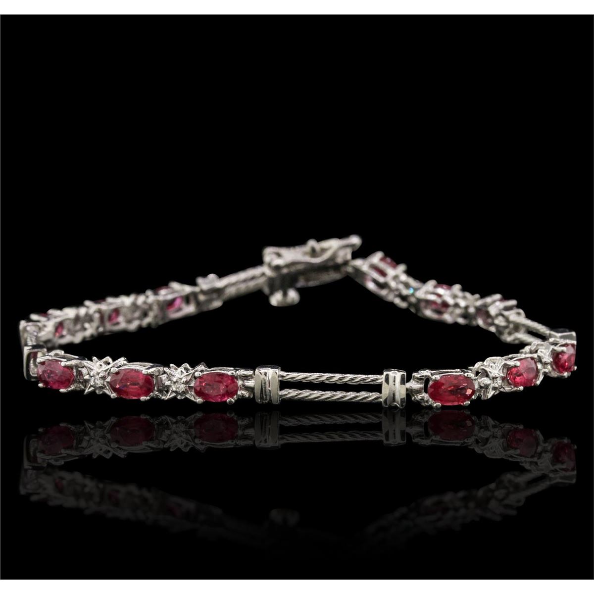 One bracelet featuring: 14KT white gold with a total weight of 8.90 grams, ruby with a total weight of 3.82ctw, and diamonds with a total weight of 0.10ctw.