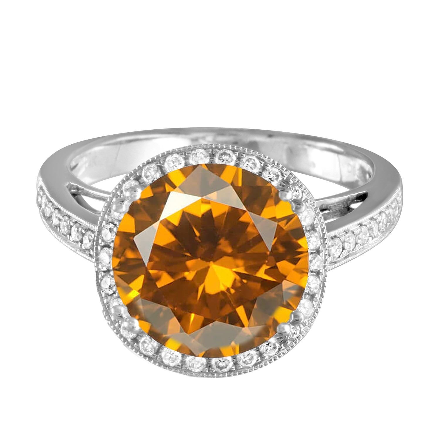 One 14KT White Gold 3.87ct Citrine and Diamond Ring. (1) Citrine stone with a total weight of 3.87cts. (39) Diamonds with a total weight of 0.32cts with a color of H-I and a clarity of SI-2. Total weight of this ring is 3.81 grams. Ring size is 6.5.