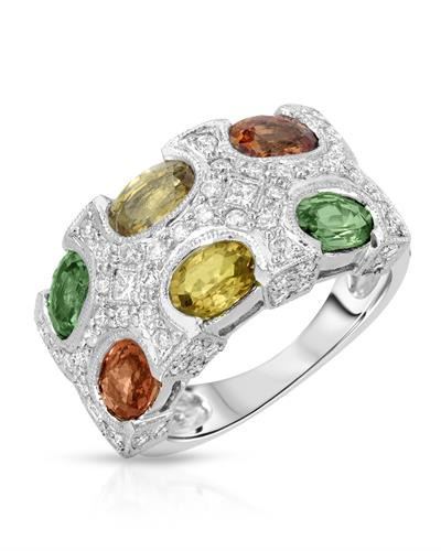 14KT White Gold 3.96ctw Multi Color Sapphire and Diamond Ring