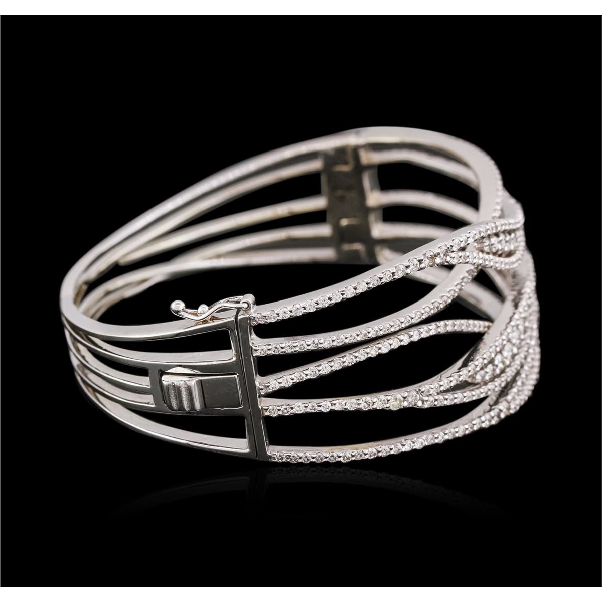One electronically tested 14KT white gold ladies cast diamond bangle bracelet with a hidden box clasp with a bright polish finish. Condition is new. Containing: Three Hundred Forty-Seven prong set round brilliant cut diamonds, measuring 2.50 - 1.30 x 1.14mm (depth est.) approximate total weight of 347 Stones = 3.99ct. Clarity: SI-1 to I-1. Color: H - I, Cut is Good. All diamonds are graded in the mounting, unless otherwise stated. Total Weight of Diamonds 3.99ct. Total Weight of Bangle Bracelet 35.50 grams. GGL Appraised at $14,325.00.