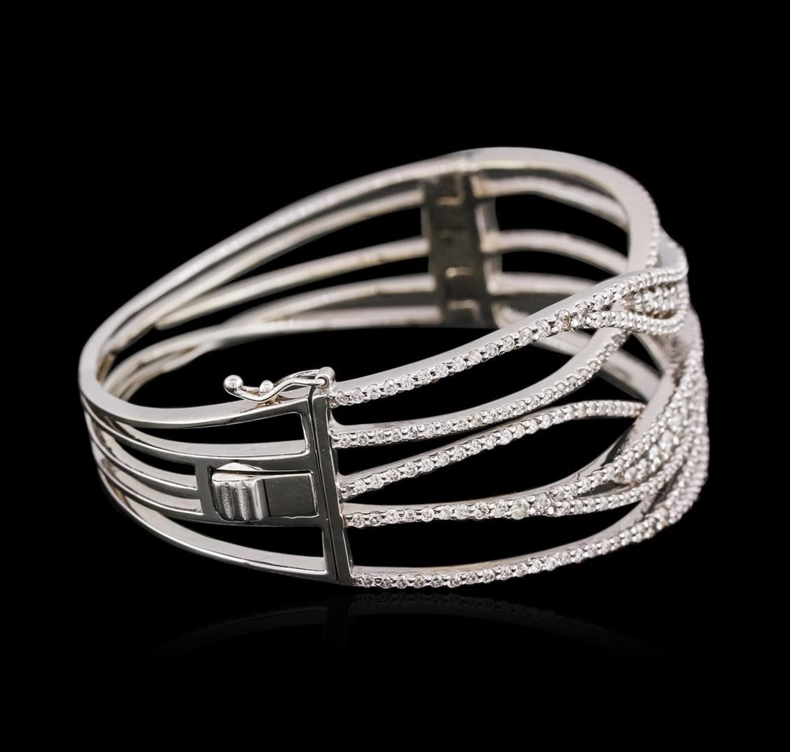 One electronically tested 14KT white gold ladies cast diamond bangle bracelet with a hidden box clasp with a bright polish finish. Condition is new. Containing: Three Hundred Forty-Seven prong set round brilliant cut diamonds, measuring 2.50 - 1.30 x 1.14mm (depth est.) approximate total weight of 347 Stones = 3.99ct. Clarity: SI-1 to I-1. Color: H - I, Cut is Good. All diamonds are graded in the mounting, unless otherwise stated. Total Weight of Diamonds 3.99ct. Total Weight of Bangle Bracelet 35.50 grams. GGL Appraised.