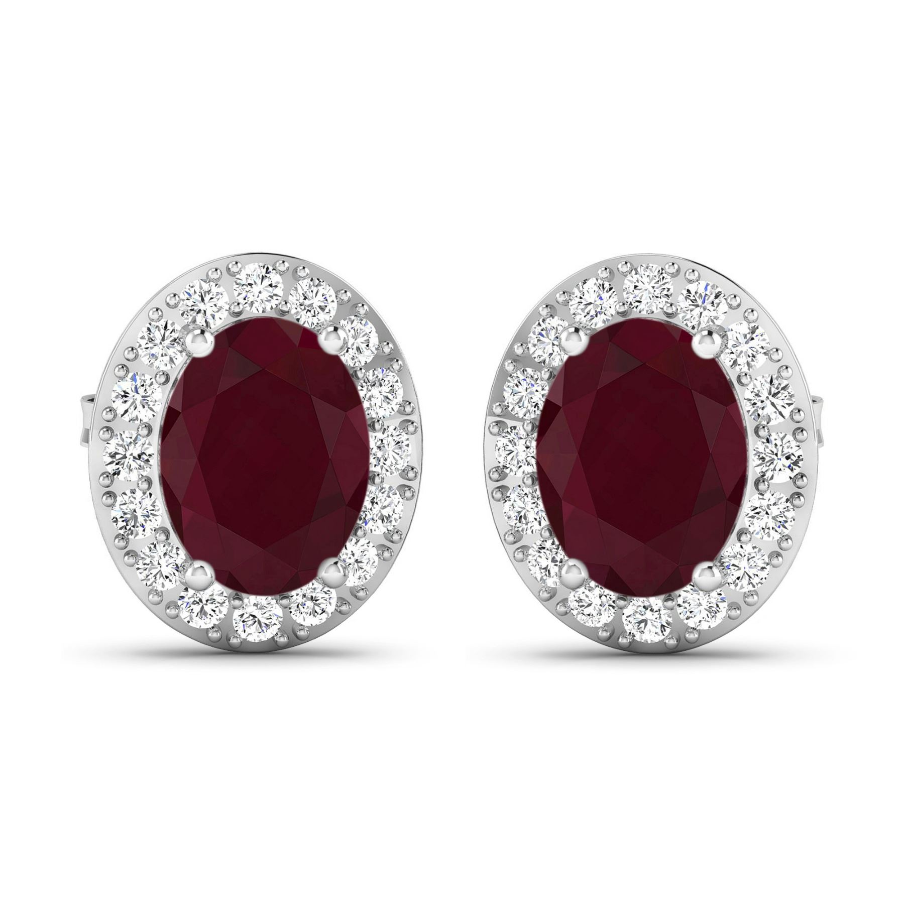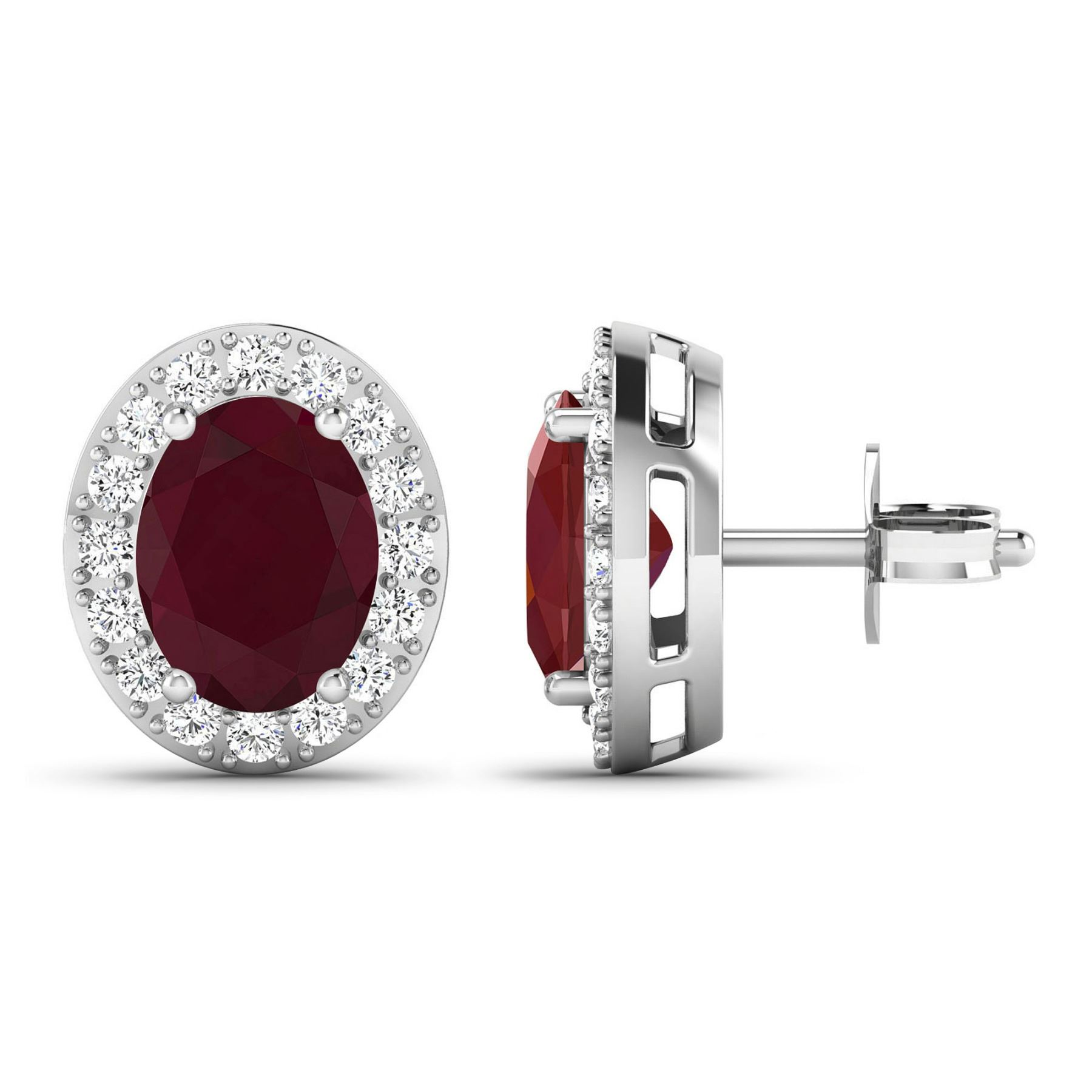 Ruby (AA) Oval 8x6mm - 2Pcs + White Diamond F/C Round 1.50mm - 32Pcs ( Diamond Quality : SI-2/HI ) ( Push Post ) Total weight of gemstones is 3cts. Total Diamond weight is 0.44cts. Total weight of these earrings are 2.76 grams.