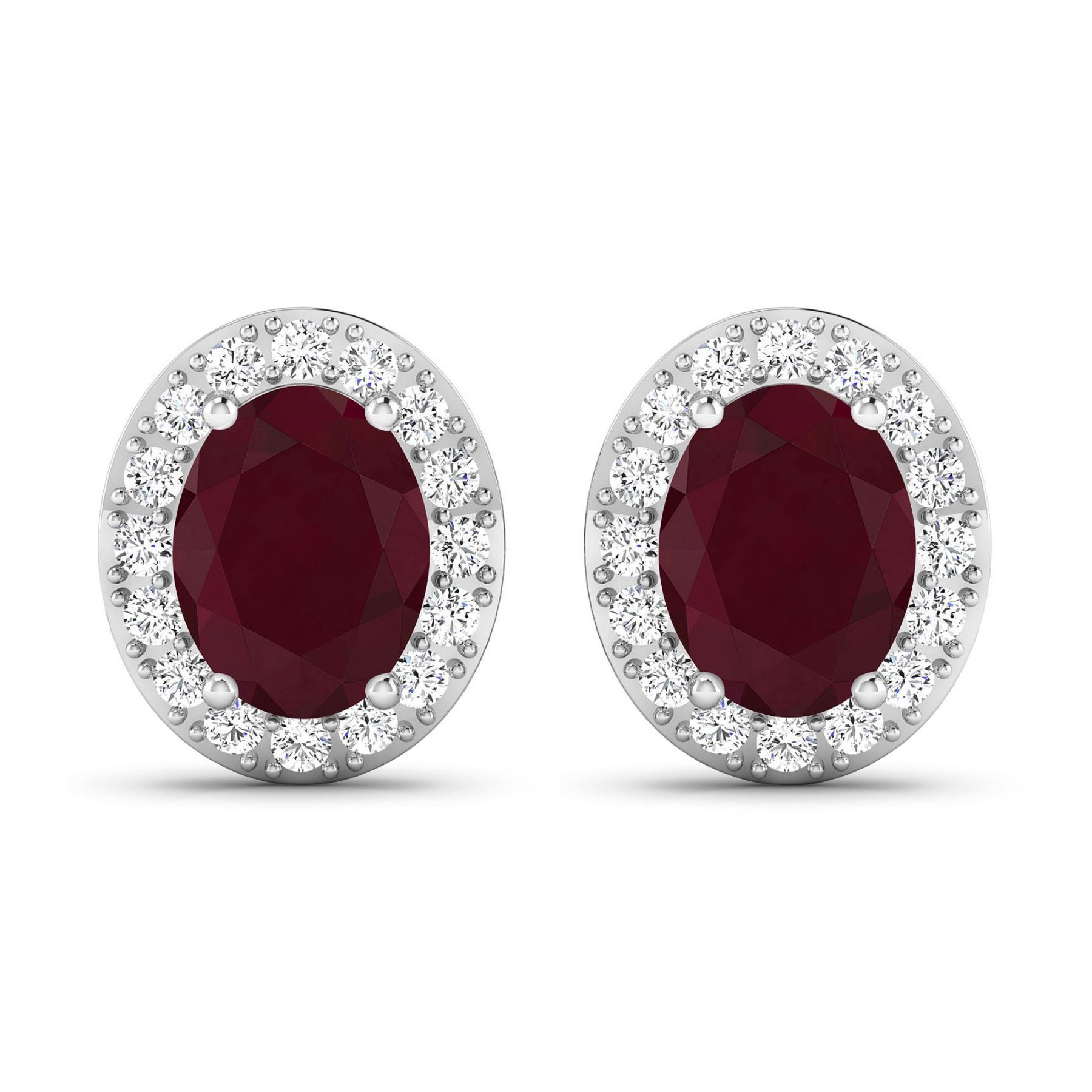 Ruby (AA) Oval 8x6mm - 2Pcs + White Diamond F/C Round 1.50mm - 32Pcs ( Diamond Quality : SI-2/HI ) ( Push Post ) Total weight of gemstones is 3cts. Total Diamond weight is 0.44cts. Total weight of these earrings are 2.76 grams.