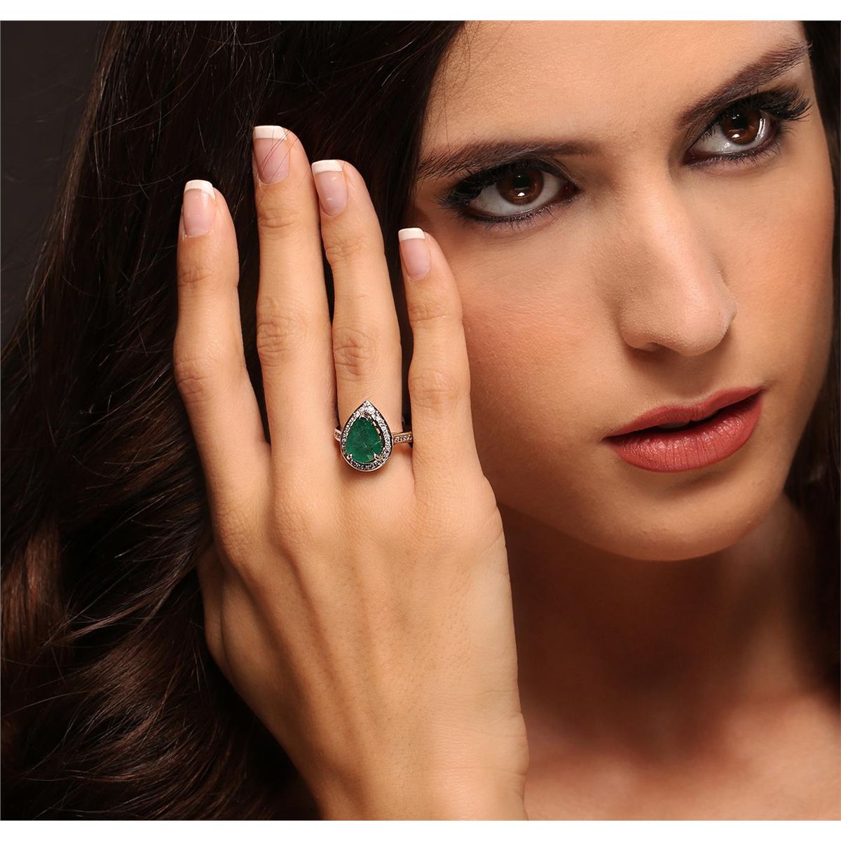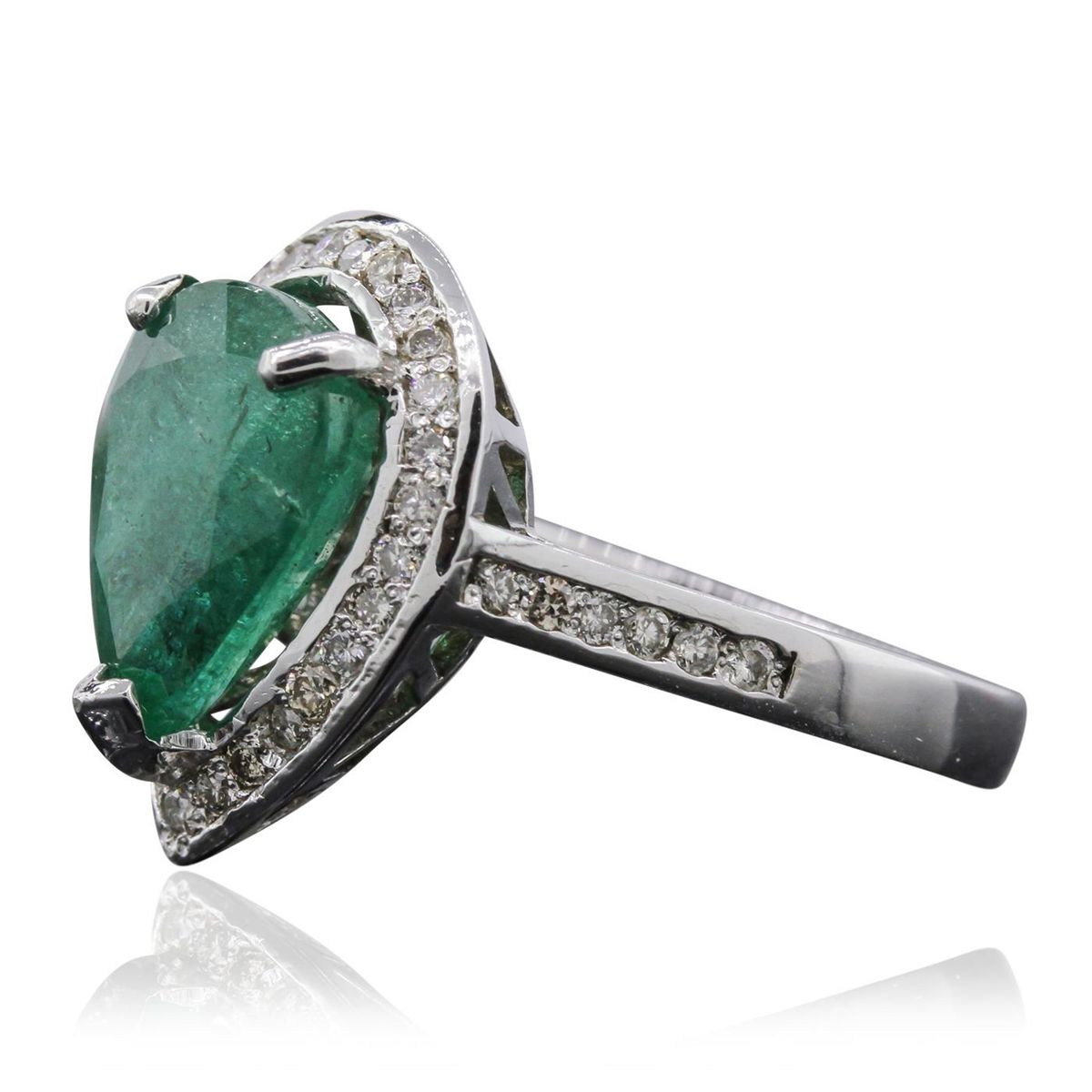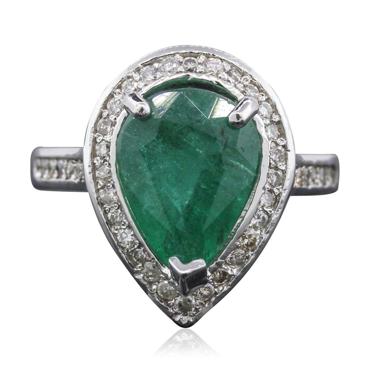 Great Condition! One electronically tested 14KT white gold Ladies combination cast & assembled fashion ring with a bright polish finish. Condition is new. Identified with markings of "14K". Containing: One prong set pear modified brilliant cut natural emerald, measuring 13.00 x 9.00 x 6.00mm, approximate weight of 4.01ct., clarity is heavily included, type III, medium, moderately strong, bluish green color, (GIA bG 5/4), cut is good. Colored gemstones are presumed to have been subjected to commonly used and possible undetectable color/clarity enhancement processes. Thirty-Nine bead set round brilliant cut diamonds, measuring 1.50 - 1.50 x 0.90mm (depth est.) approximate total weight of 39 Stones = 0.48ct. Clarity of I-1 to I-2, Color of I - J, Cut is Good. Total Weight of Colored Stones 4.01ct. Total Weight of Diamonds 0.48ct. Total Weight of Ring 5.80 grams. GGL Appraised at $10,600.00.