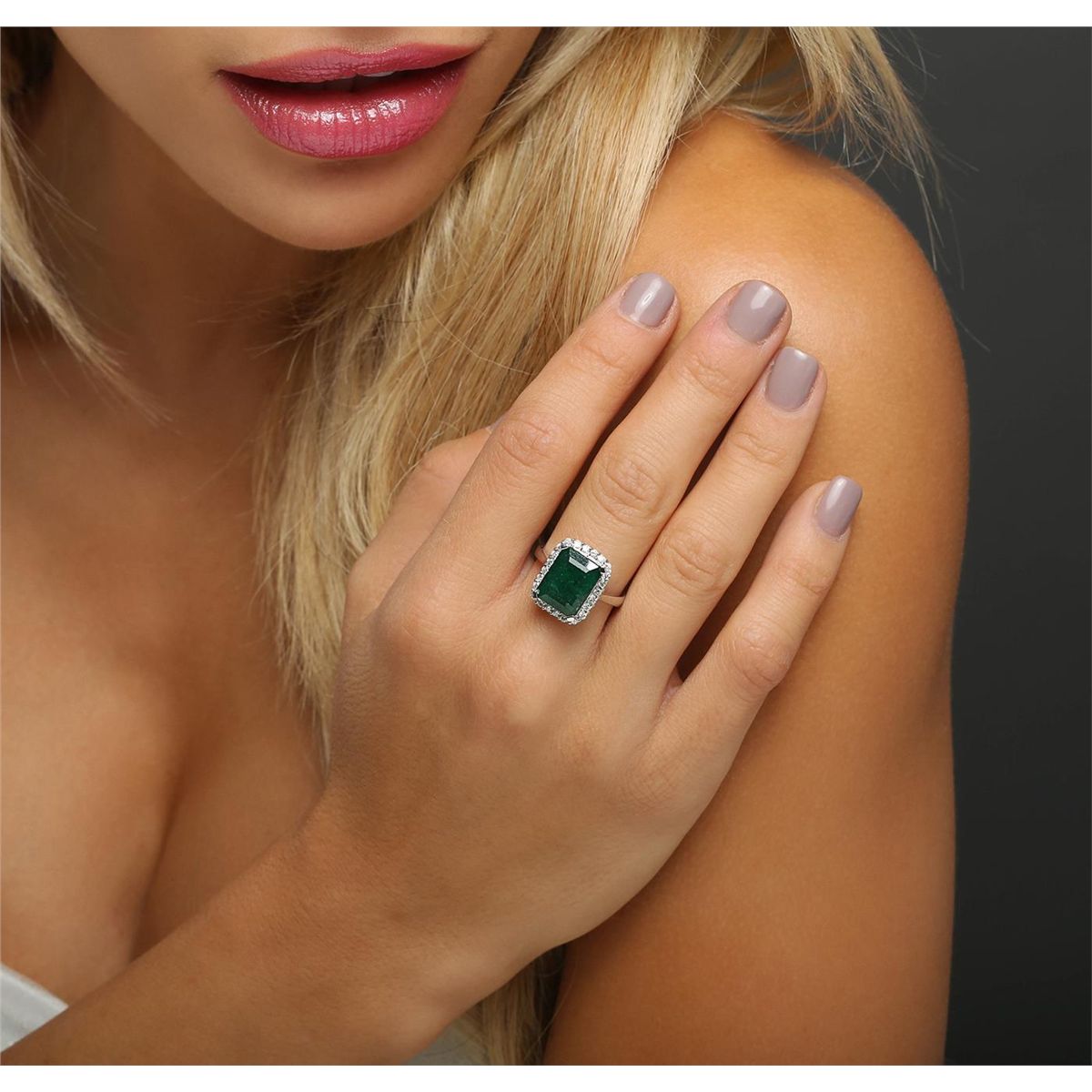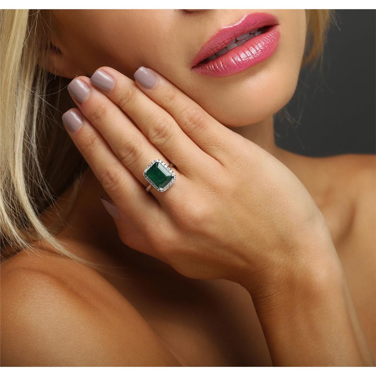One electronically tested 14KT white gold ladies combination cast & assembled ring with a bright polish finish. Identified with markings of "K14". Condition is new. Containing: One prong set emerald standard step cut natural emerald, measuring 11.56 x 9.12 x 5.24mm, approximate weight of 4.06ct., clarity is heavily included, type III, medium dark, moderately strong, green color, (GIA G 6/4), cut is good. Twenty-Four prong set round brilliant cut diamonds, measuring 1.80 - 1.70 x 1.05mm (depth est.) approximate total weight of 24 Stones = 0.47ct. Clarity: I-1 to I-2. Color: I - J, Cut is Good. Colored gemstones are presumed to have been subjected to commonly used enhancement processes. All diamonds and colored gemstones are graded in the mounting, unless otherwise stated. Total Weight of Colored Stones 4.06ct. Total Weight of Diamonds 0.47ct. Total Weight of Ring 5.20 grams. GGL Appraised at $9,665.00.