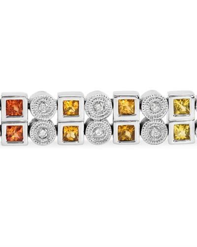 One 14KT White Gold 4.07ctw Multi Color Sapphire and Diamond Bracelet. (48) Multi color stones with a total weight of 4.07cts. (48) round Diamonds with a total weight of 0.80cts with a color of I and clarity of I-1. Total weight of this bracelet is 30.31 grams.