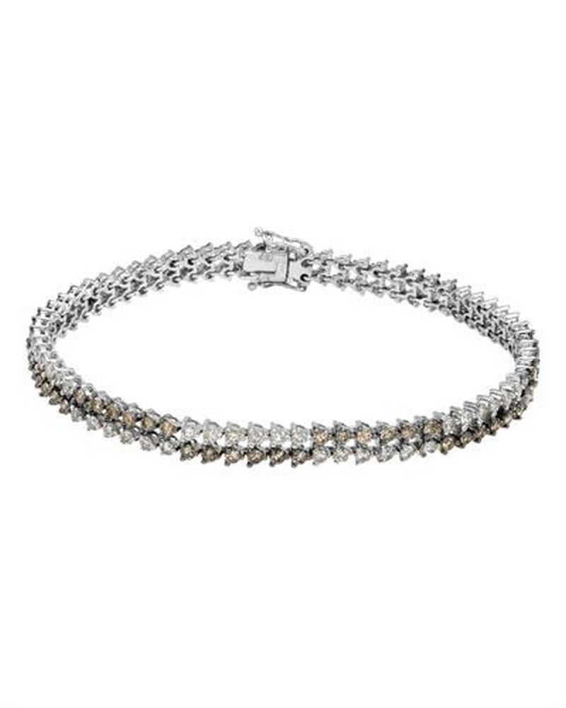 One 14KT White Gold 4.10ctw Diamond Bracelet. (72) Round Diamonds with a total weight of 2.14cts with a color of Brown and clarity of SI-2. (70) Round Diamonds with a total weight of 1.96cts with a color of I and clarity of I-2.Total length of this bracelet is 7.25 inches. Total weight of this bracelet is 12.21 grams.