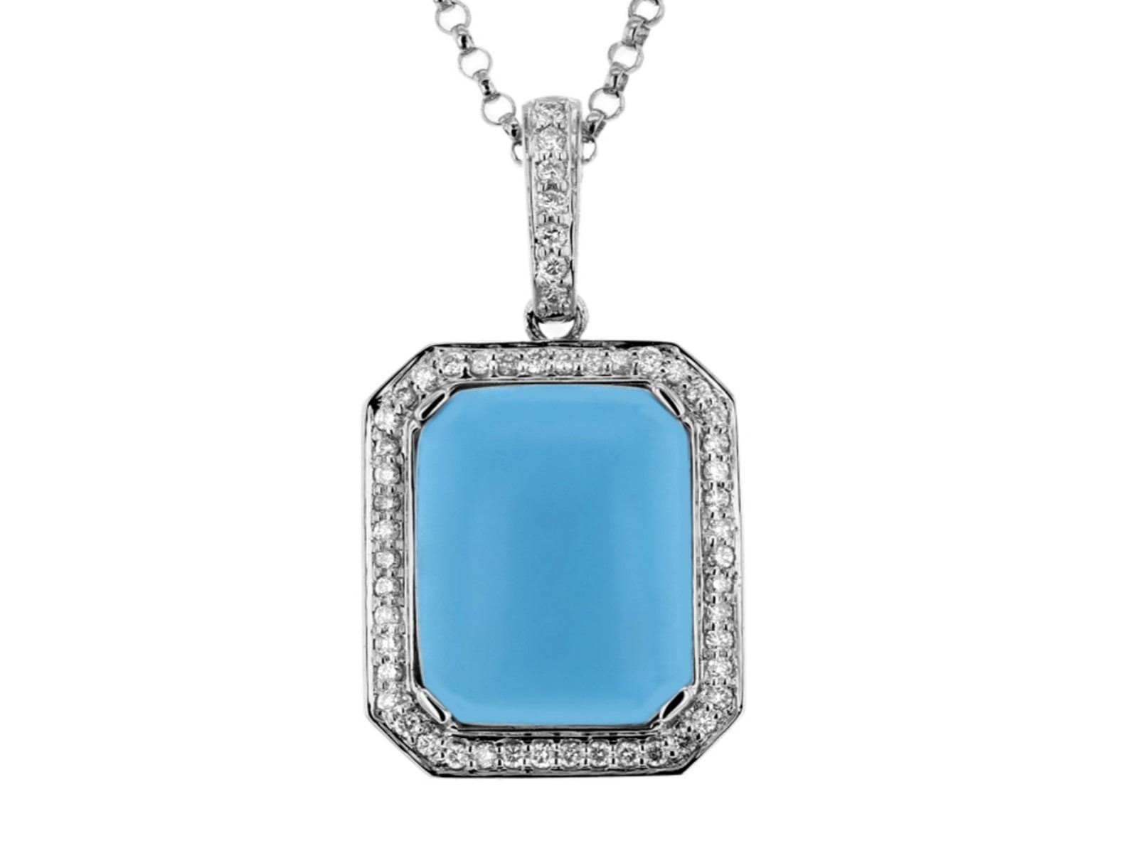 14KT White Gold 4.34ct Turquoise and Diamond Pendant with Chain
