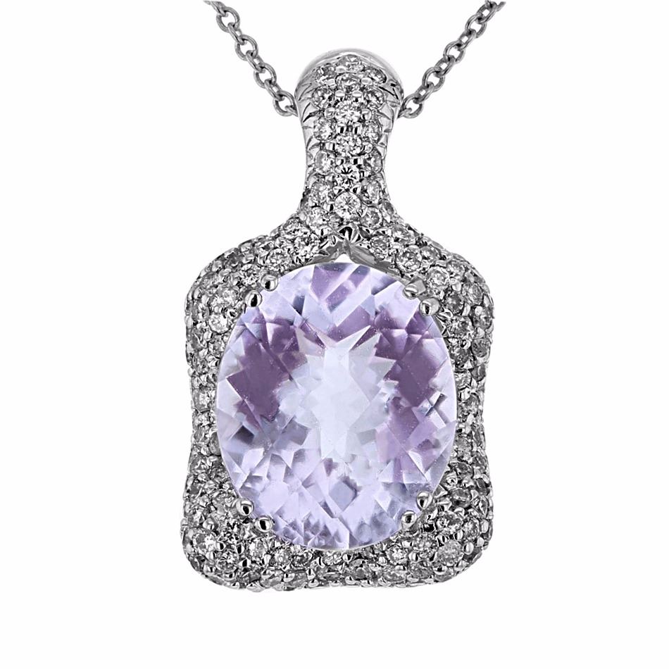 14KT White Gold 4.36ct Amethyst and Diamond Pendant with Chain