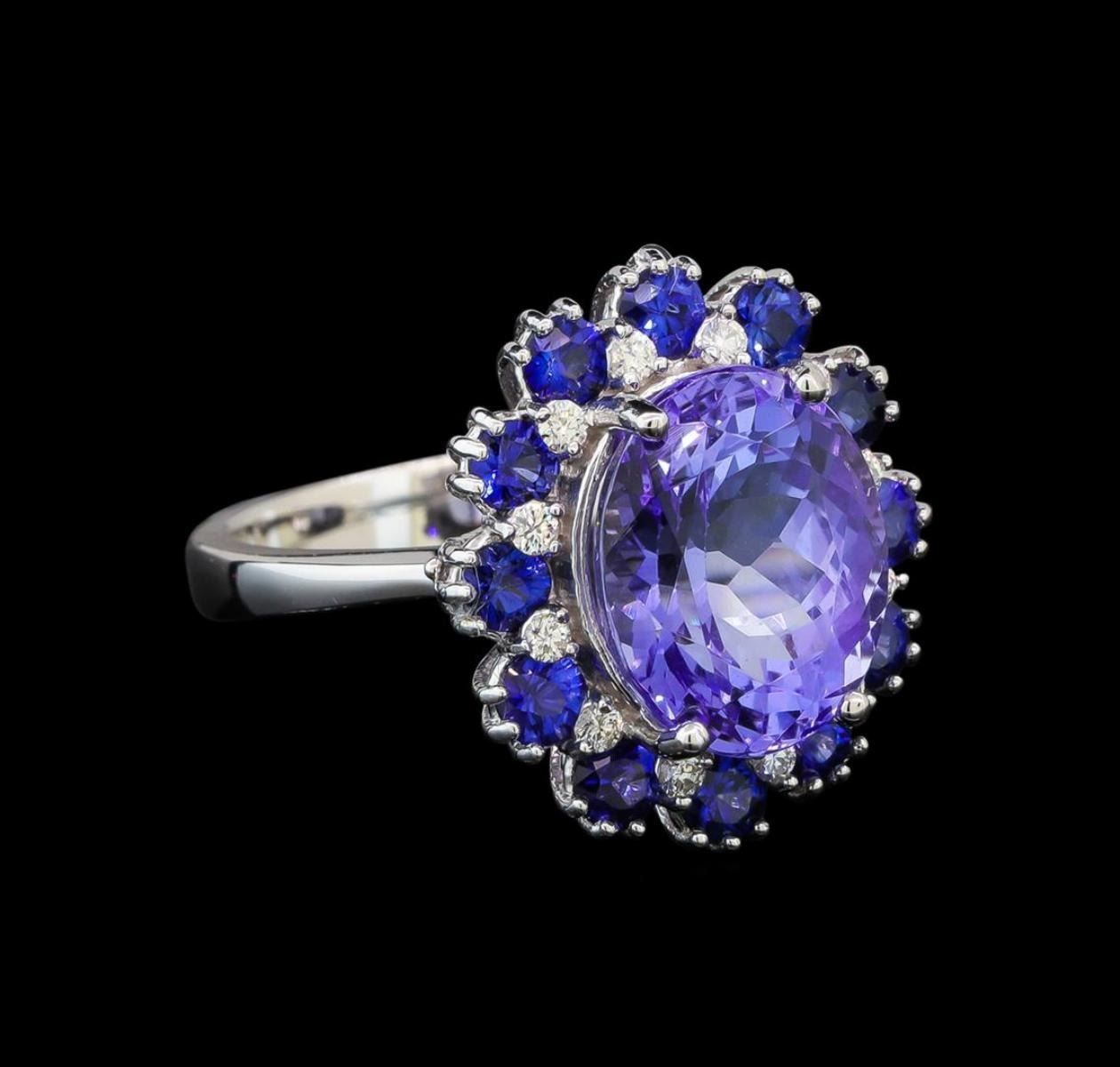 14KT White Gold 4.45 ctw Tanzanite, Sapphire and Diamond Ring